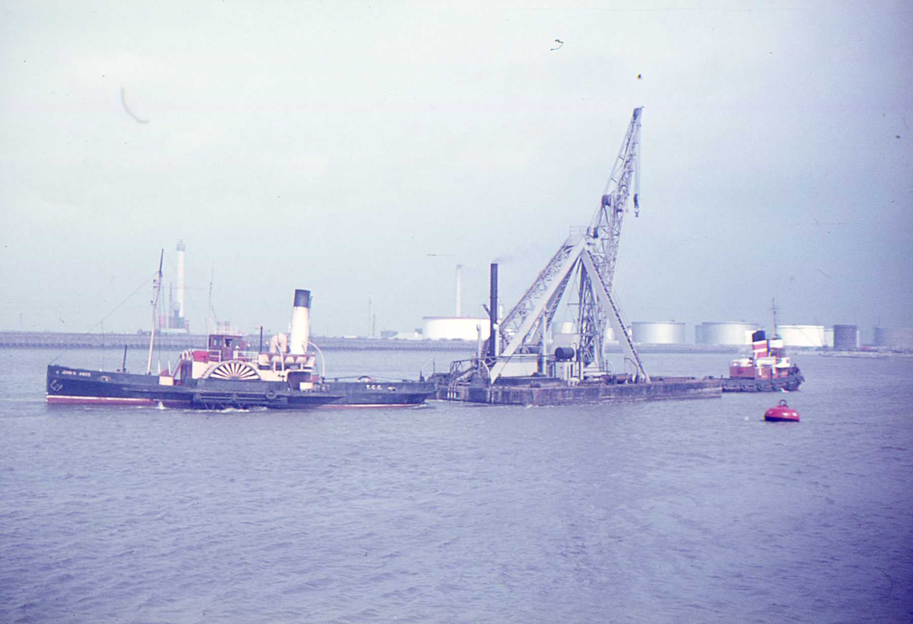 The floating crane was in regular use on the river in the post war years,loading heavy lifts and on at least one occasion lightening a ship stranded in the river. Where she ended her days however seems a bit of a mystery.