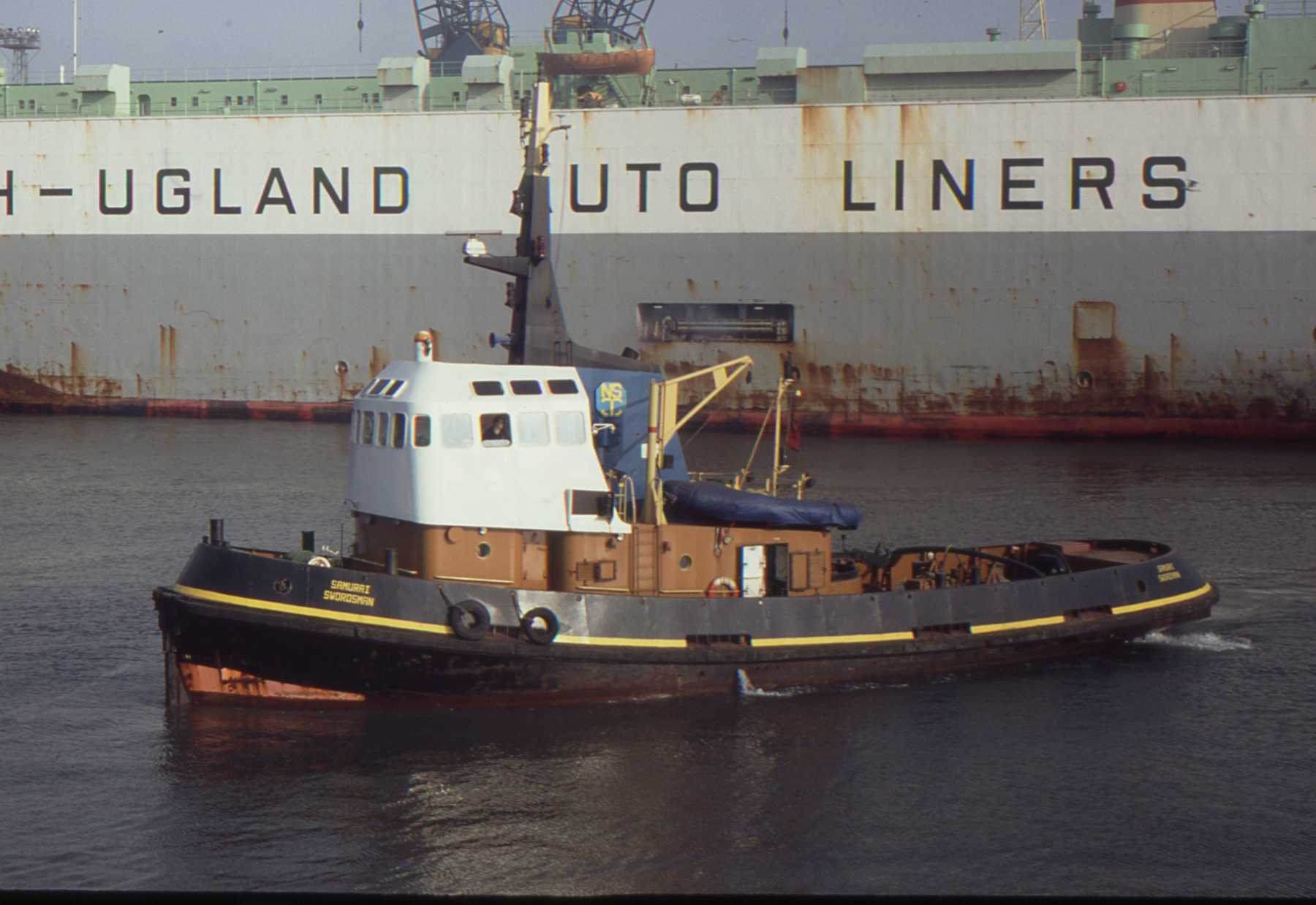 Built 1980 at Hessle as WEARSIDER for Lawson-Batey Tugs Ltd., Newcastle. May 1991 chartered by North Sea Tugs Ltd. to work on the R. Tees, handling Japanese car carriers and renamed SAMURAI SWORDSMAN. June 1992 charter completed, renamed WEARSIDER and returned to the R. Tyne.