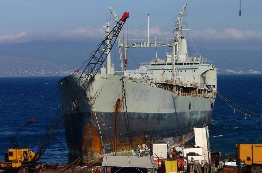 The RFA tanker Appleleaf, seen at Wallsend on 28 June 1980, was originally one of the last vessels ordered by John Hudson Fuel and Shipping (perhaps better known as the Hudson Steamship Co.). Completed by Cammell Laird in 1976 she never traded for Hudson and was finally converted to an RFA on the Tyne. One of four similar vessels ordered by Hudson from Cammell Laird, all of which eventually became RFA ships, she was sold to the Australian navy in 1989 and became the RAN replenisnment vessel Westralia.