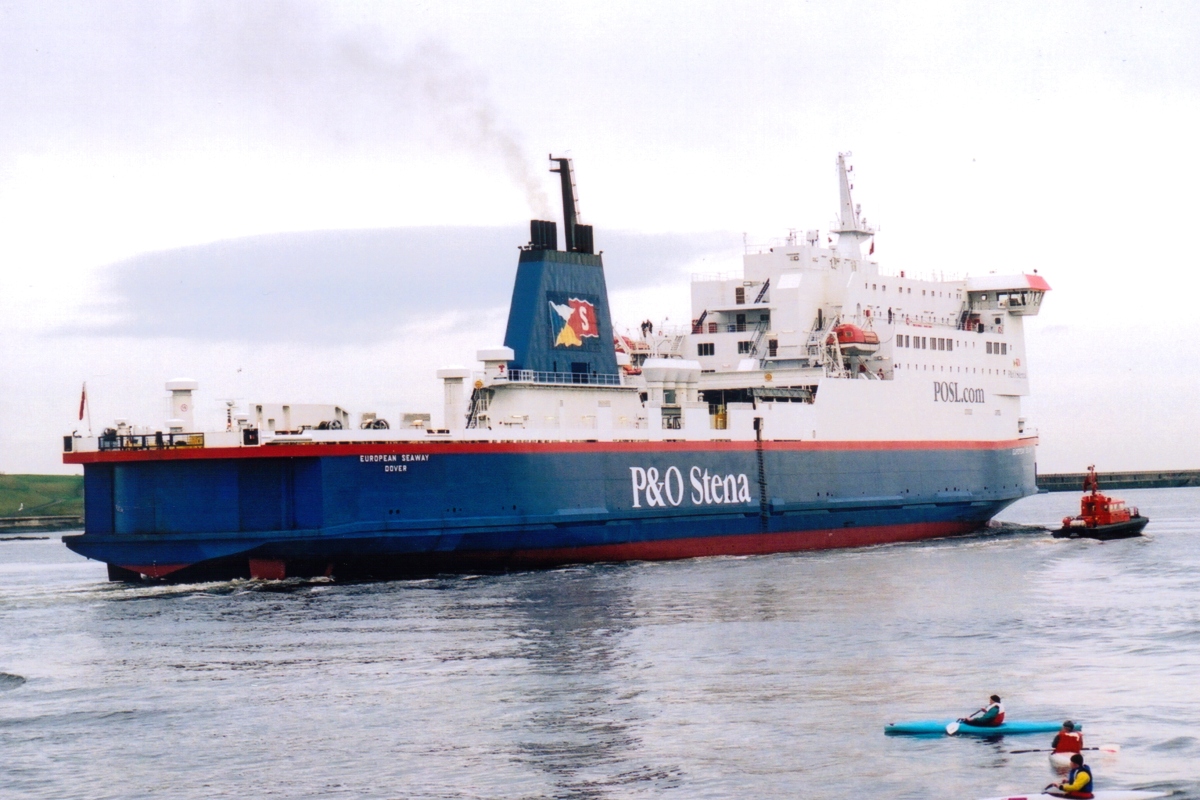 EUROPEAN SEAWAY outwards from drydocking. Sorry no date on photos (about 2002)
