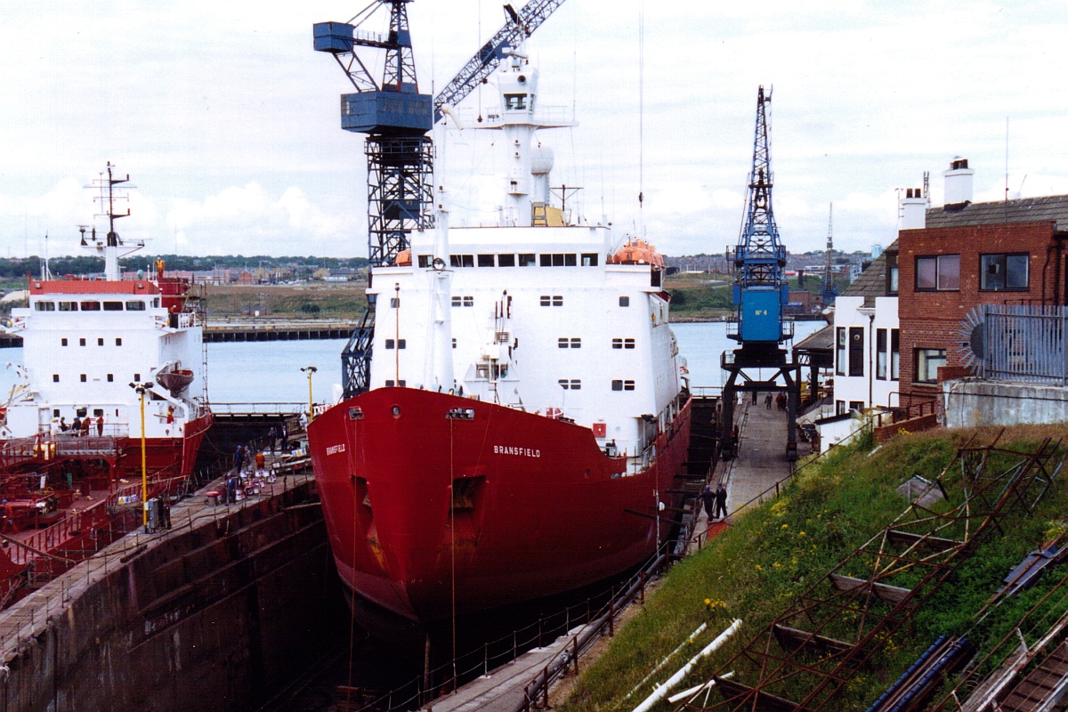 BRANSFIELD in dock and alongside at South Shields. Sorry no dates on photos.