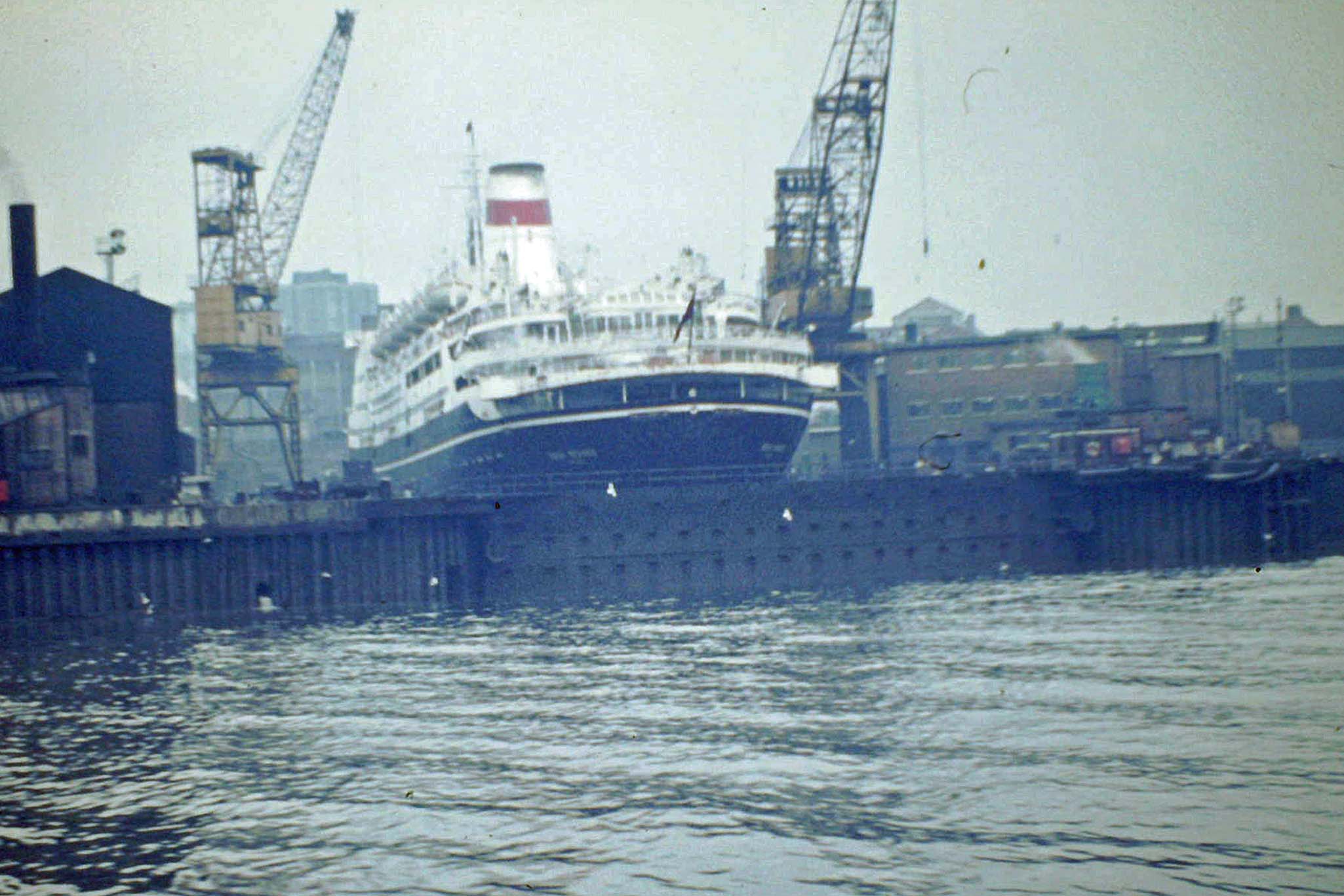 The Russian flagged Ivan Franko in dry dock at Wallsend in March 1970