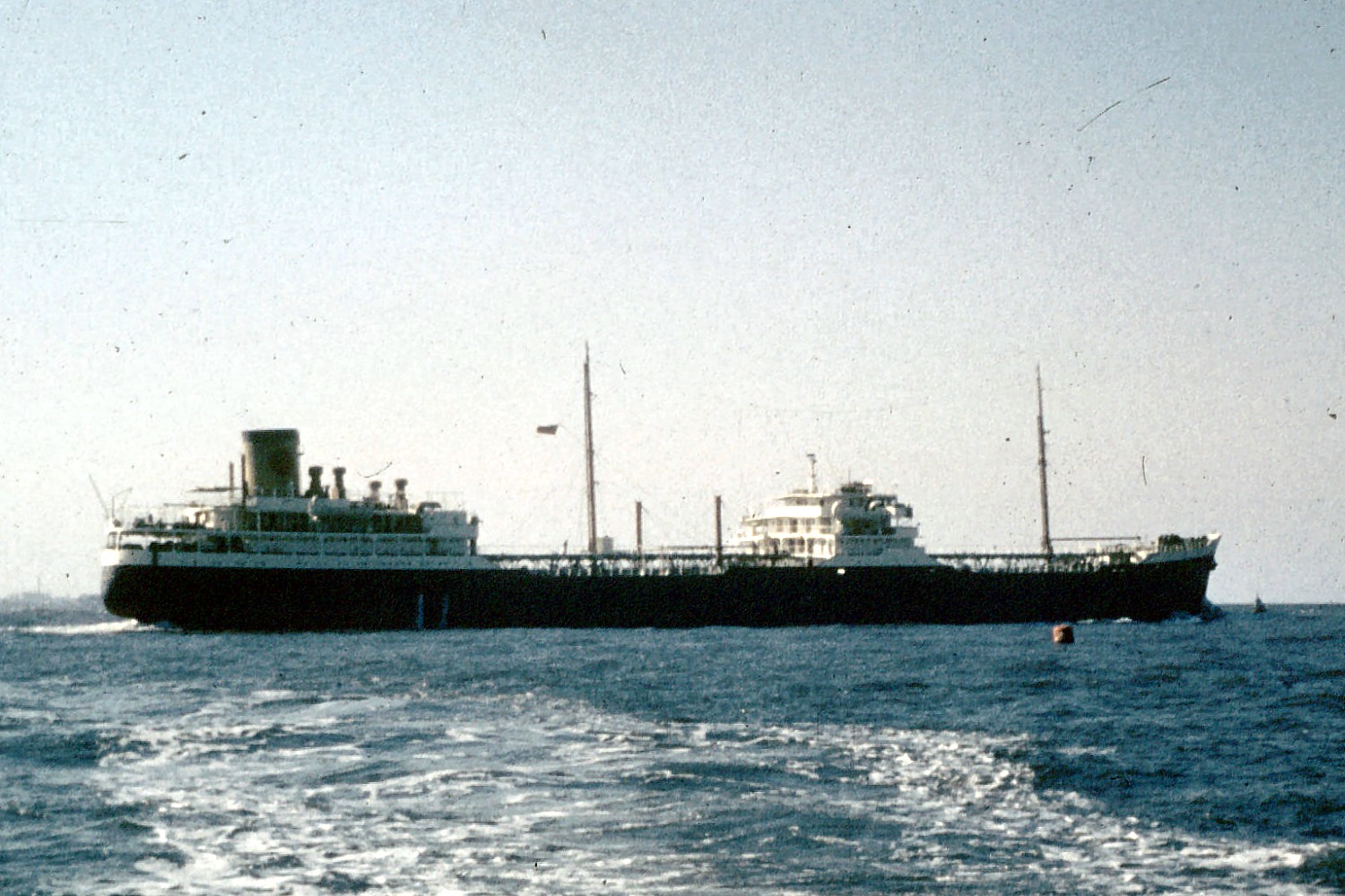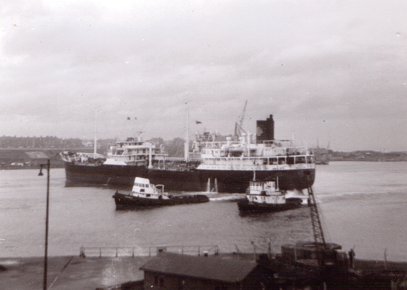 An enlarged, so somewhat blurred, view of the HELDIA in Tees Bay, taken by Albert Weller on an unknown date (but with the old yellow Shell funnel!):