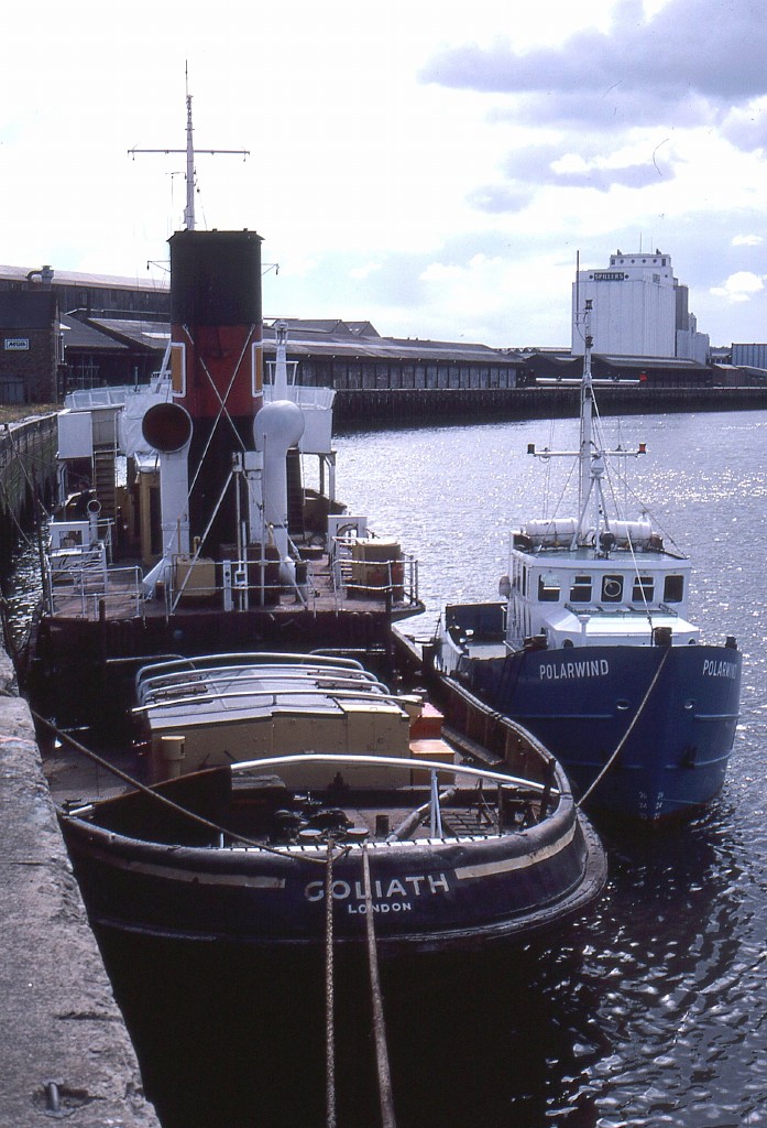 Not exactly Tyne Tugs and Port Craft, but tugs and a port craft on the Tyne. Chipchase, Goliath and an unidentified naval port craft at Newcastle on 3 October 1982, some time before the tugs (and the other vessel?) moved to Maryport.