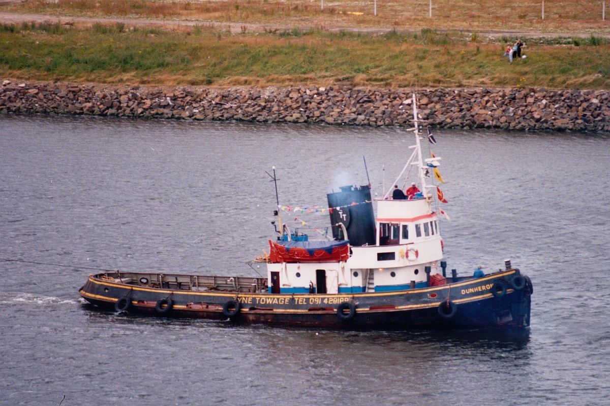 DUNHERON leading a tall ship out from Newcastle in 1993.