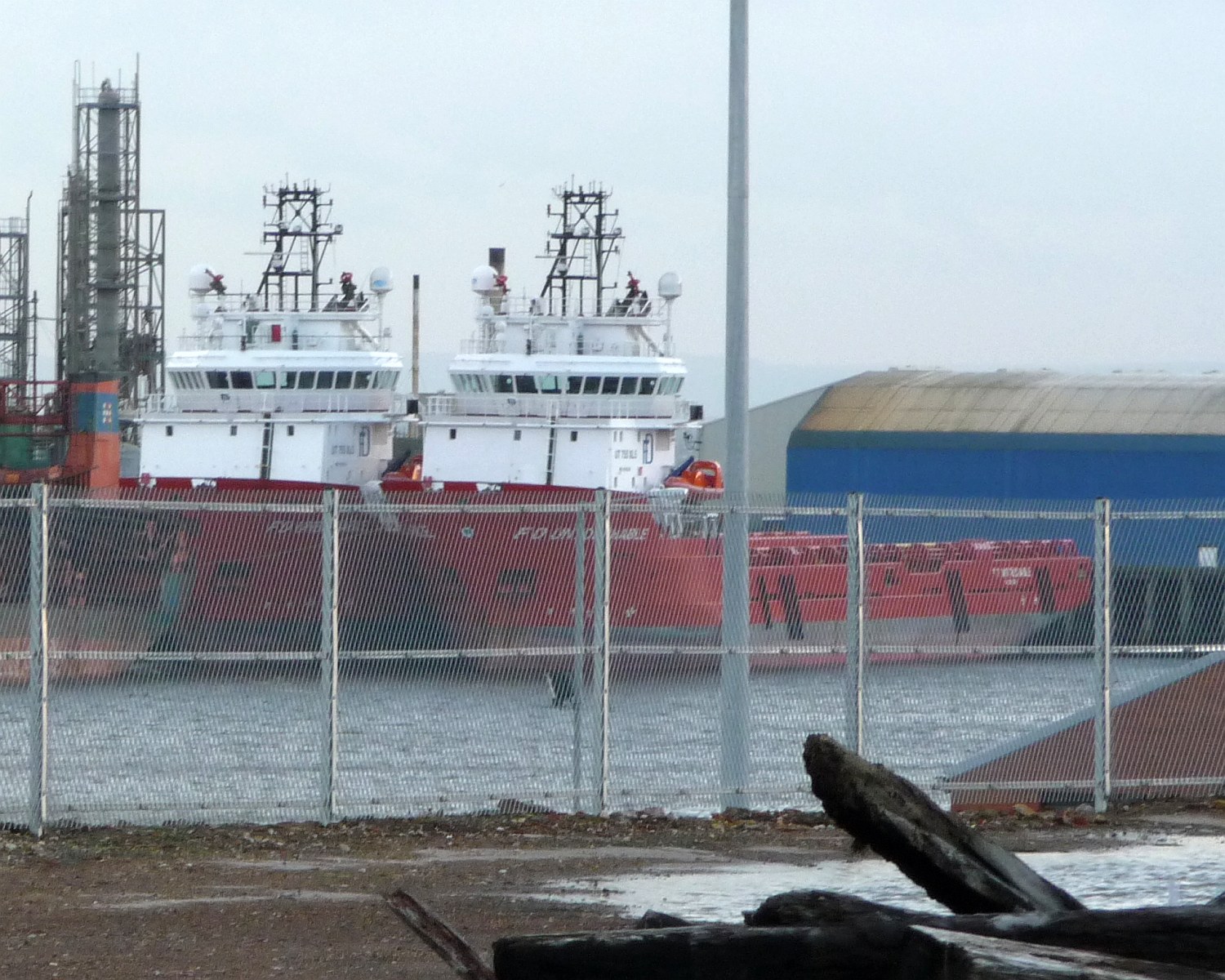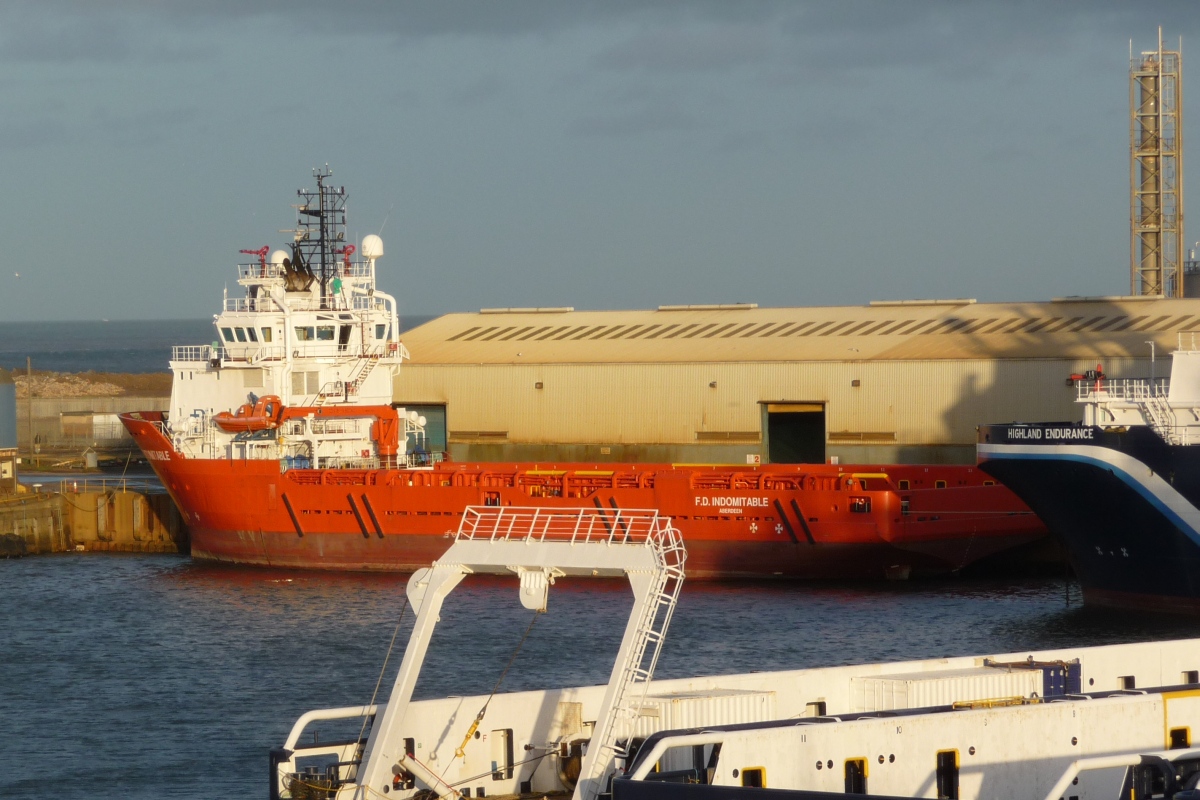 FD INDOMITABLE (with HIGHLAND ENDURANCE astern) at East Quay, Hendon Dock.
