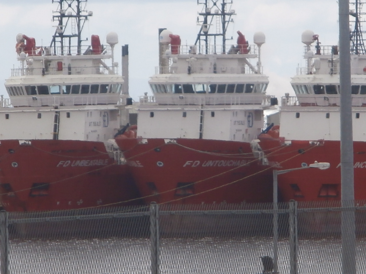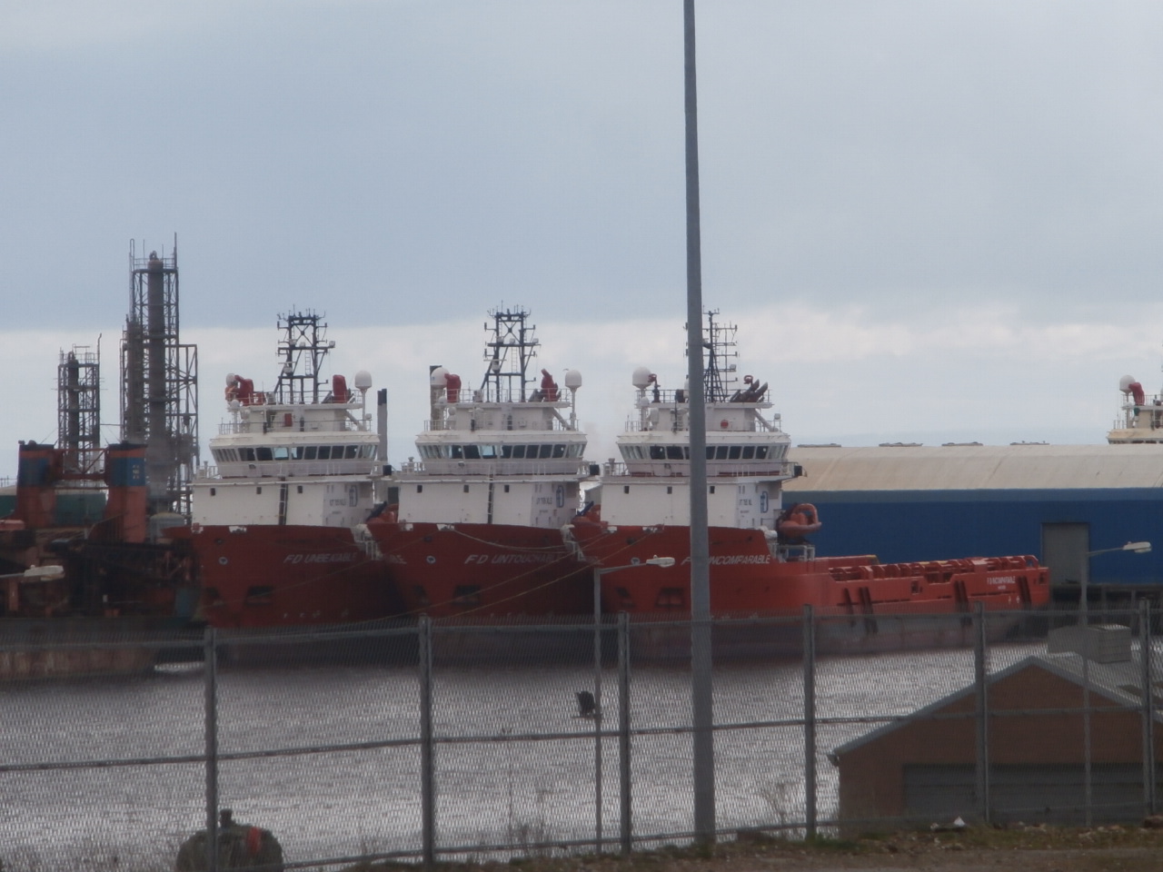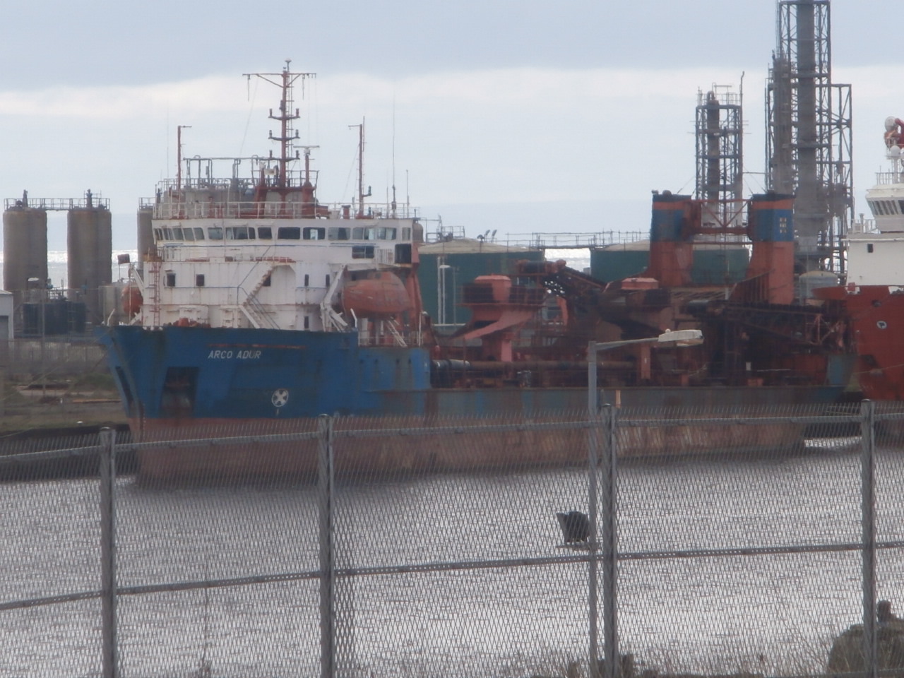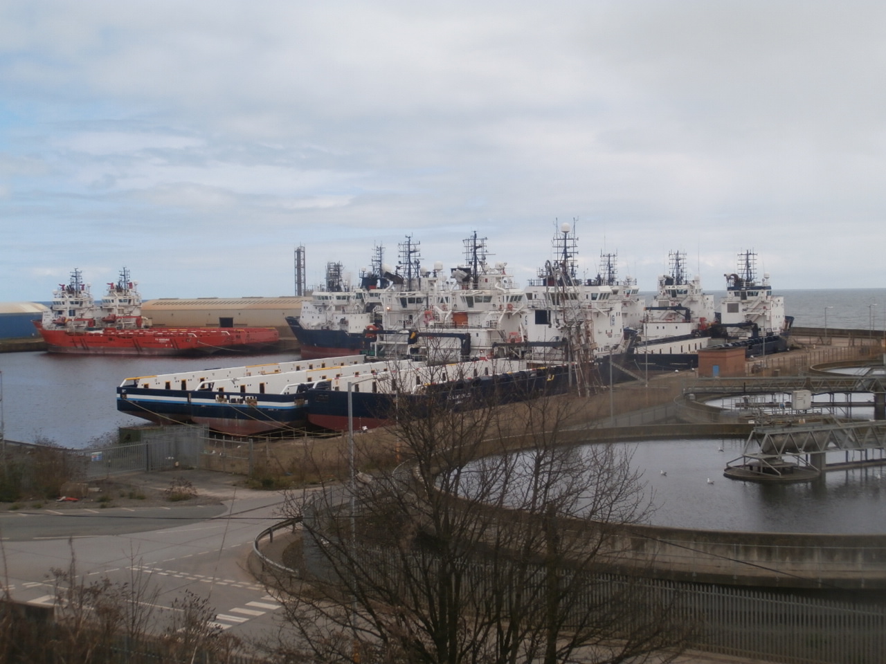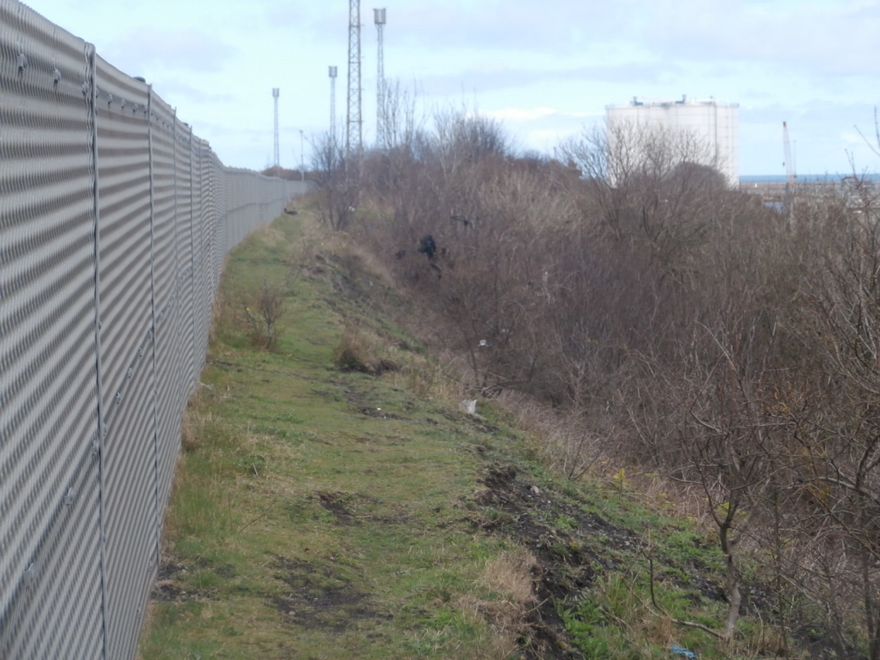 Walk back up to the railway line and follow it North. The line is fenced off on your left and the port soon appears fenced off to the right.