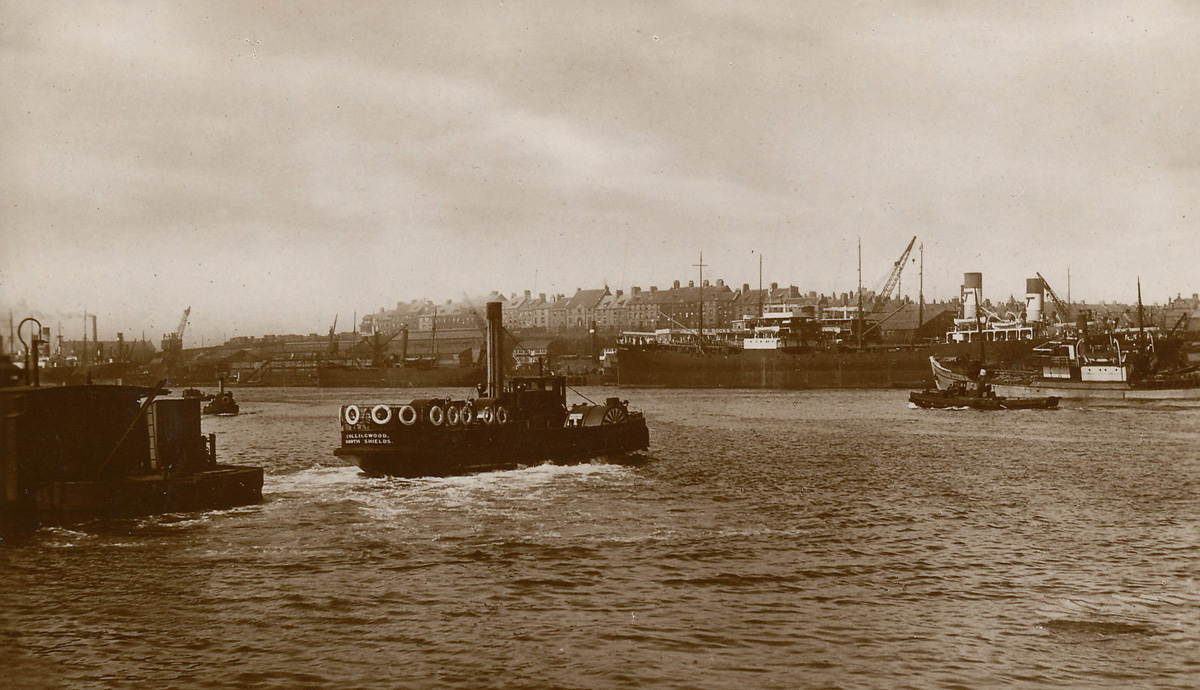 As its name implies the Direct Ferry went by the shortest route and landed at the end of Wapping Street by what was Brigham and Cowans. Renoldson's yard was just a wee bit further down. The buildings are on the Lawe Top.