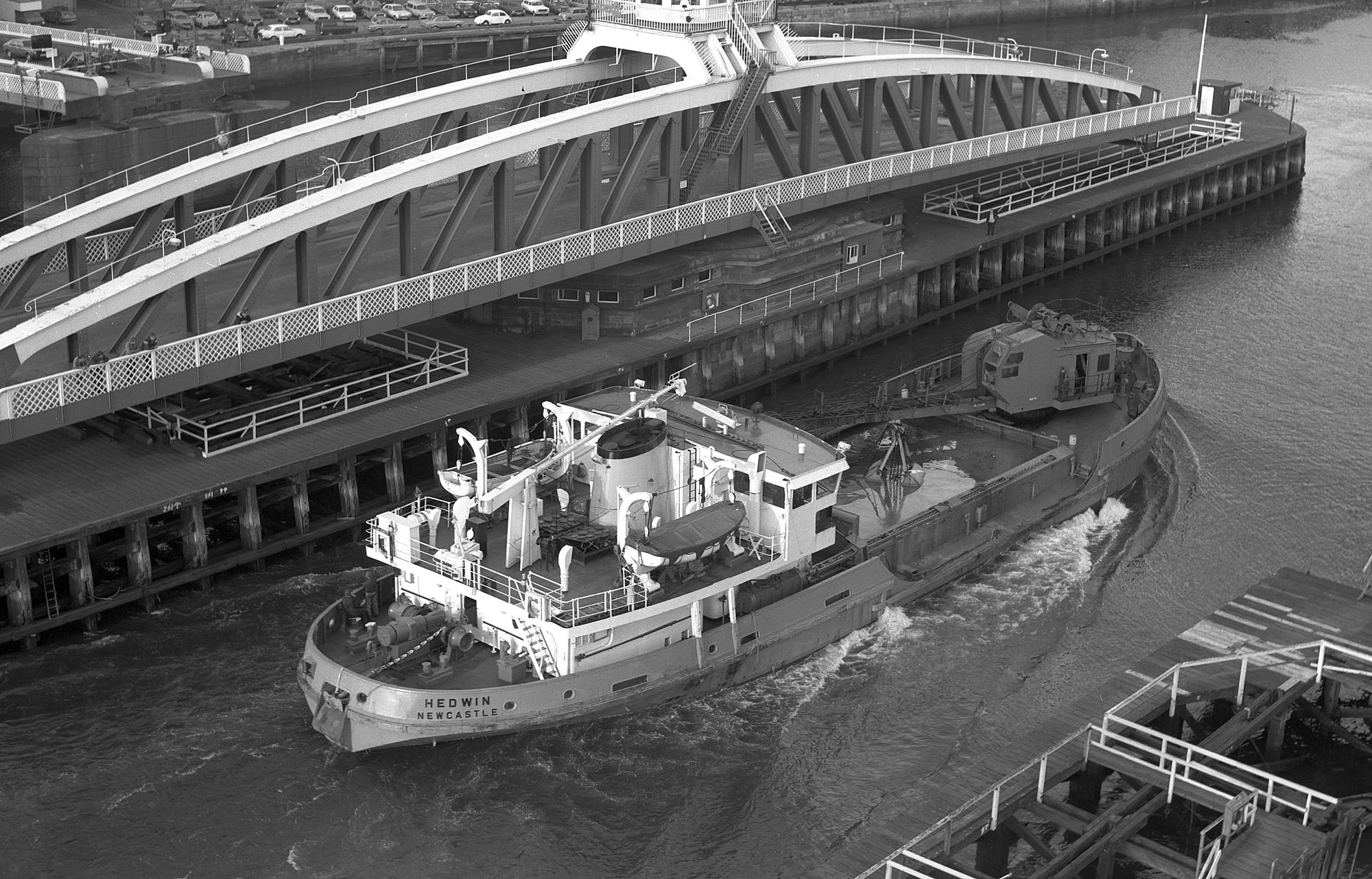 Captured in the early 70's as the grab dredger was passing downriver. I wonder if she had been working around Dunston Coal Staiths which were operational until 1980, the CWS Flour Mill and Clayton & Davies shipbreaking yard at Dunston would be the only other places above the Tyne bridges recieving the occasional vessel by this time.