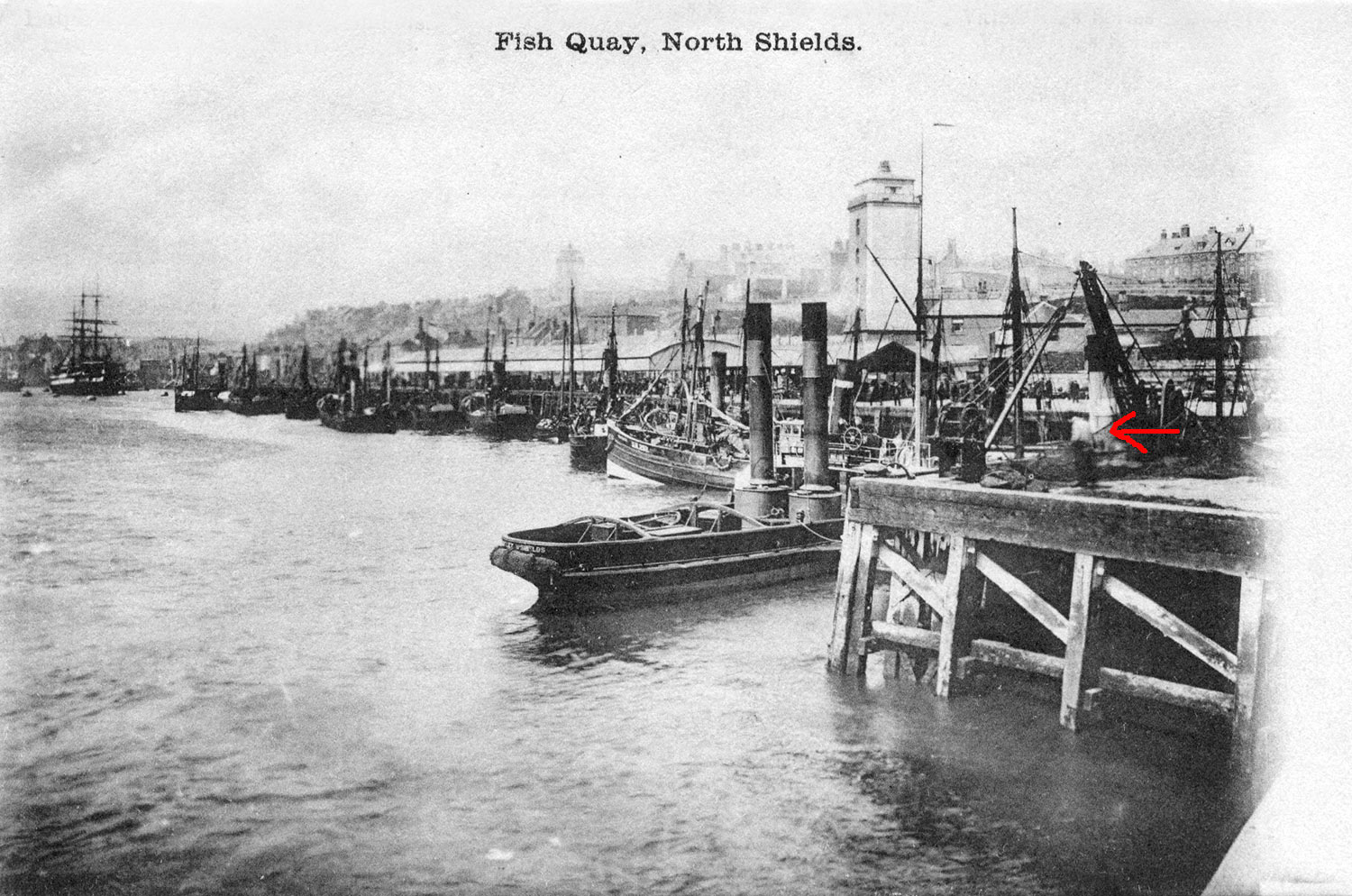 Two undated card photos of the Fish Quay, North Shields. If you look at the second photo i'm sure that's a young "magoonigal" taking notes (see red arrow).