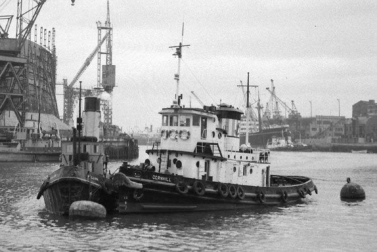 Wear tugs PALLION & CORNHILL. PALLION was built by Richard Dunston at their Thorne yard in 1944 as TID 72. She spent most of her life on the Wear until being broken up there in 2008. CORNHILL was American built in 1943 and served some 30 years on the river for France, Fenwick Tyne & Wear. She was eventually broken up in 1996. For details of the CORNHILL see http://www.tynetugs.co.uk/dpc991943.html