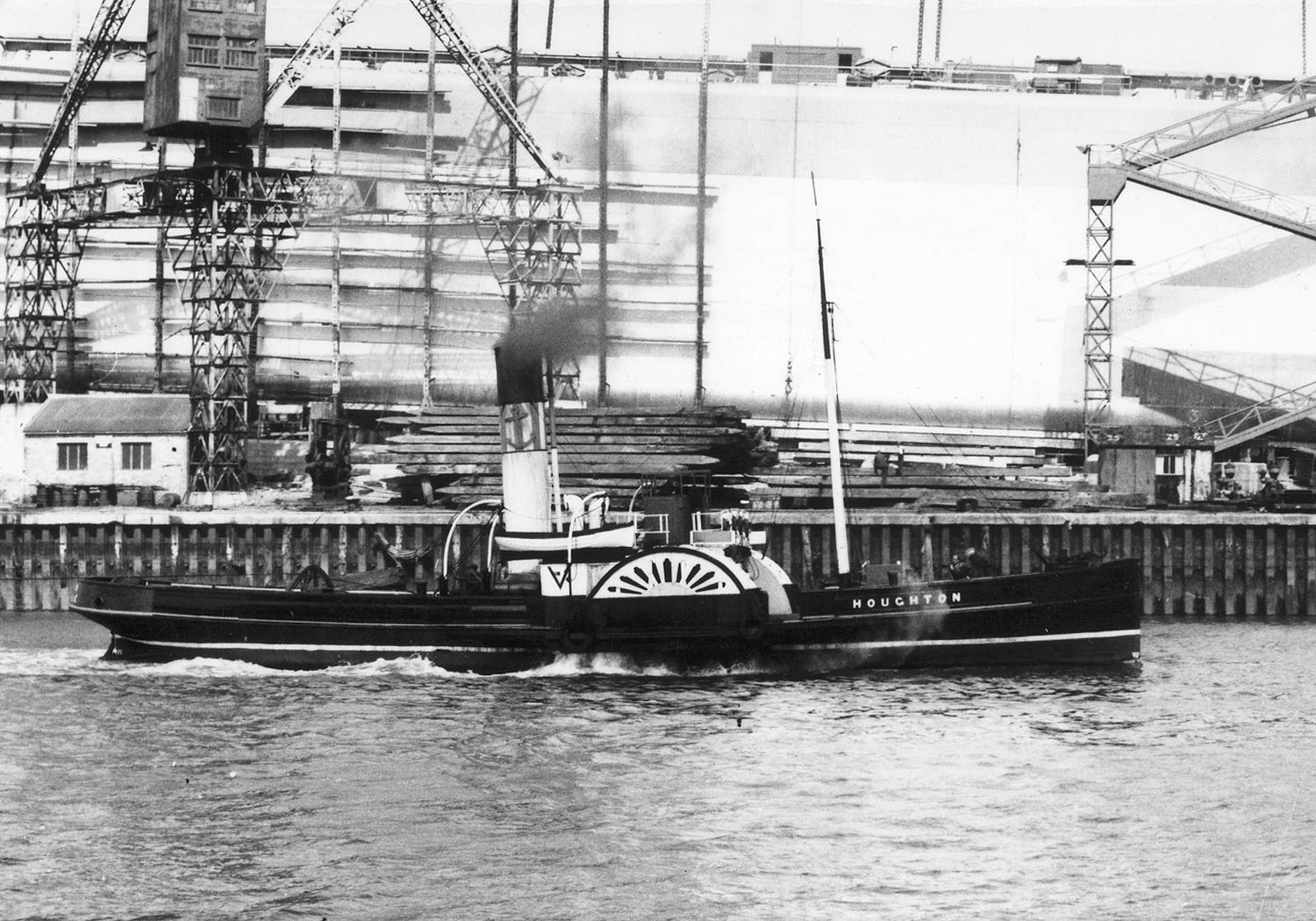 On 8 August 1962 I visited Sunderland armed with my new camera - a box-type Kodak, but a vast improvement on the one I had used previously. One of the several ships recorded that day was the veteran paddle-tug HOUGHTON, 133gt, completed by Hepple of South Shields in January 1904. Her initial owners were The Lambton Collieries Ltd, later Lambton & Hetton Collieries, and later still Lambton, Hetton and Joicey Collieries. In November 1945 (now that date does have personal significance for me!) she was transferred to France Fenwick Tyne & Wear Co. Ltd., whose distinctive and attractive funnel colours the HOUGHTON shows above. She was 60 years old when she was scrapped at Dunston in October 1964.