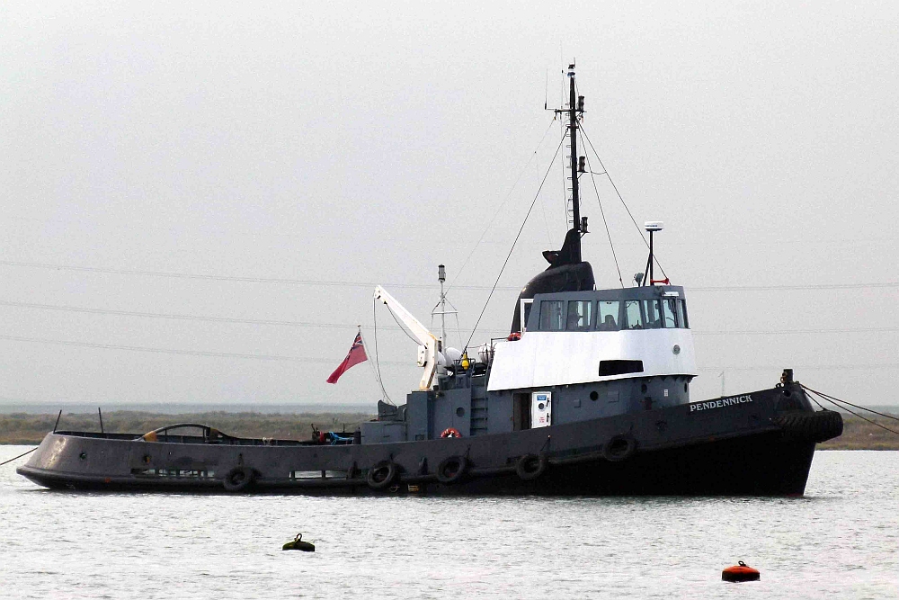 PENDENNICK was then sold by Fowey Harbour Commissioners in 2008 to Izax Offshore at Lowestoft. Didn't seem to be doing much at Lowestoft except for getting a new paint job. She made a trip across to Sweden when it was speculated that she had been sold, but no, she came back to Lowestoft again. She has recently (2013) been seen moored in the Swale as per this photo by Ted Ingham.