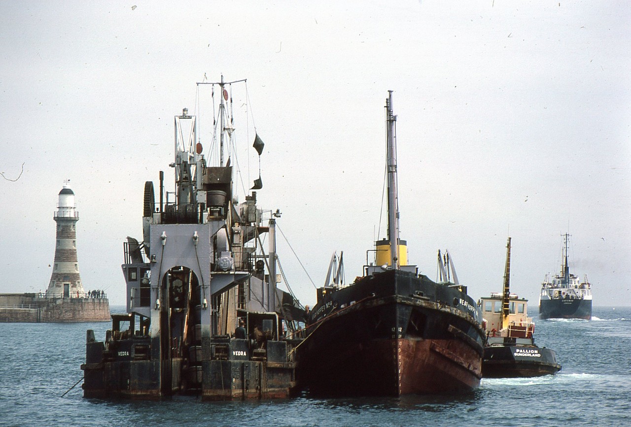 The VEDRA took over from the Pontoon Dredger VISCOUNT RIDLEY which was built in 1909 by Fleming & Furguson Ltd, Paisley for Blyth Harbour Commissioners.