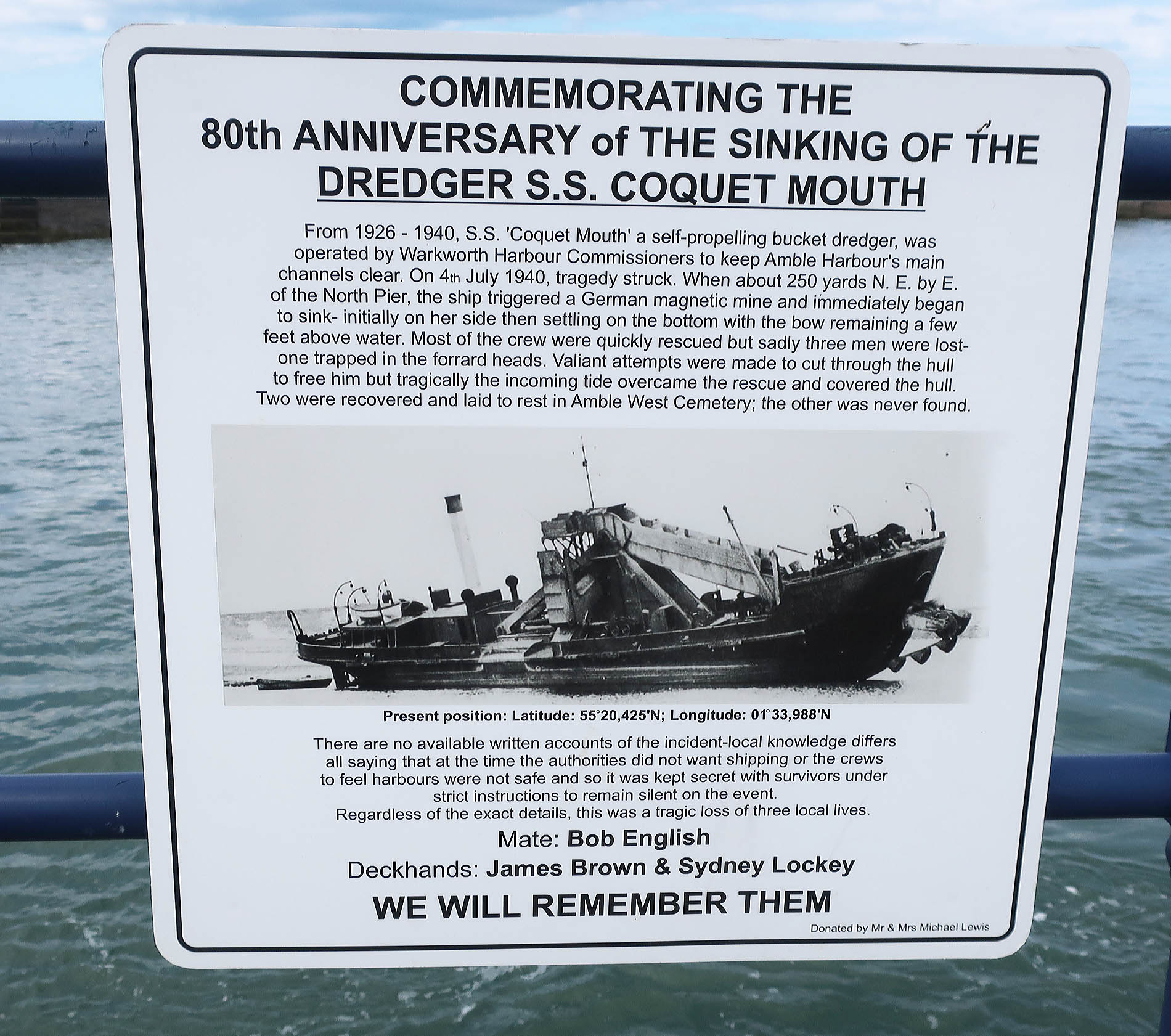 Judging by its pristine condition, and the date mentioned in the text, I guess this panel has just recently been attached to the railings near the entrance to Warkworth Harbour