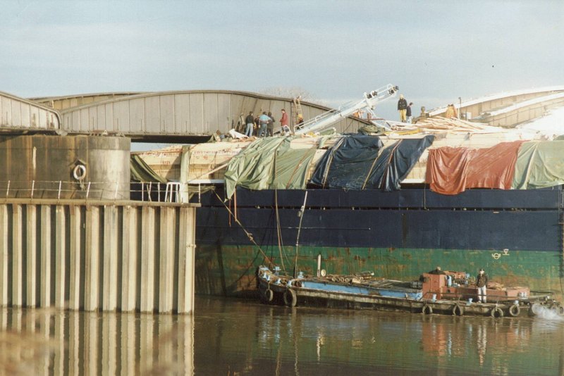 Her greater infamy was on 23/11/1988 when she had a wee argument with Skelton Railway Bridge. One of the fixed spans rather stupidly refused to swing for her ...
