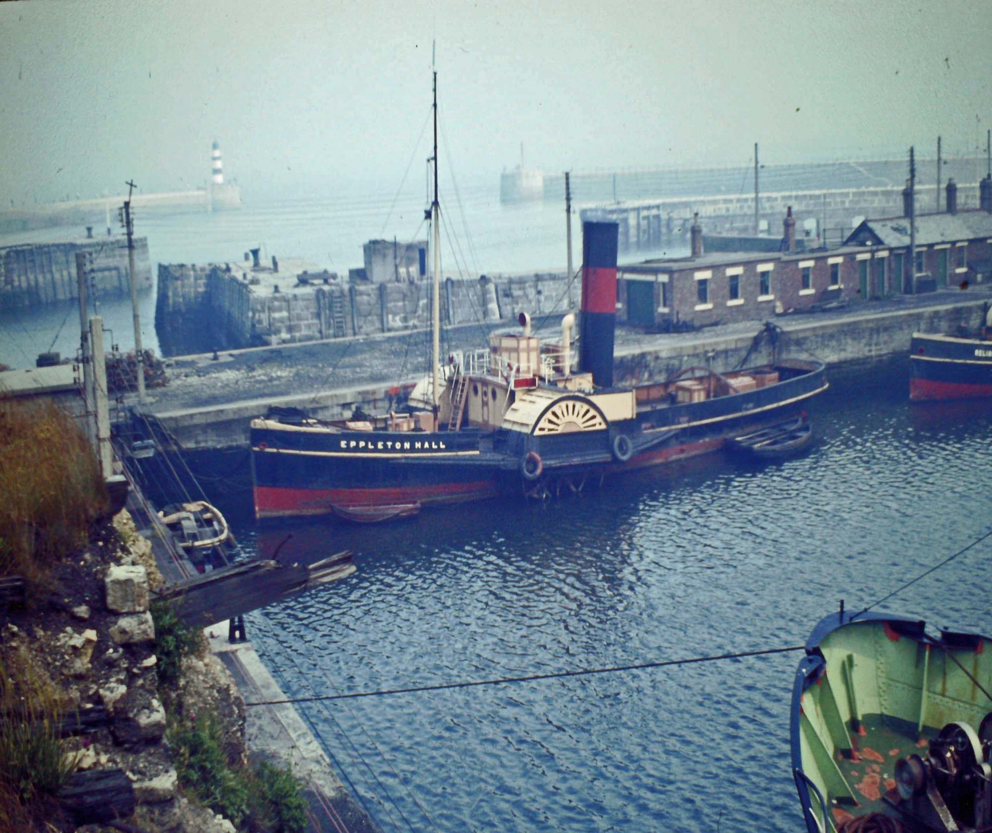 Paddle tug Eppleton Hall 166grt Seaham Harbour Dock Co Ltd at Seaham July 1967. A dodgty place to stand!!