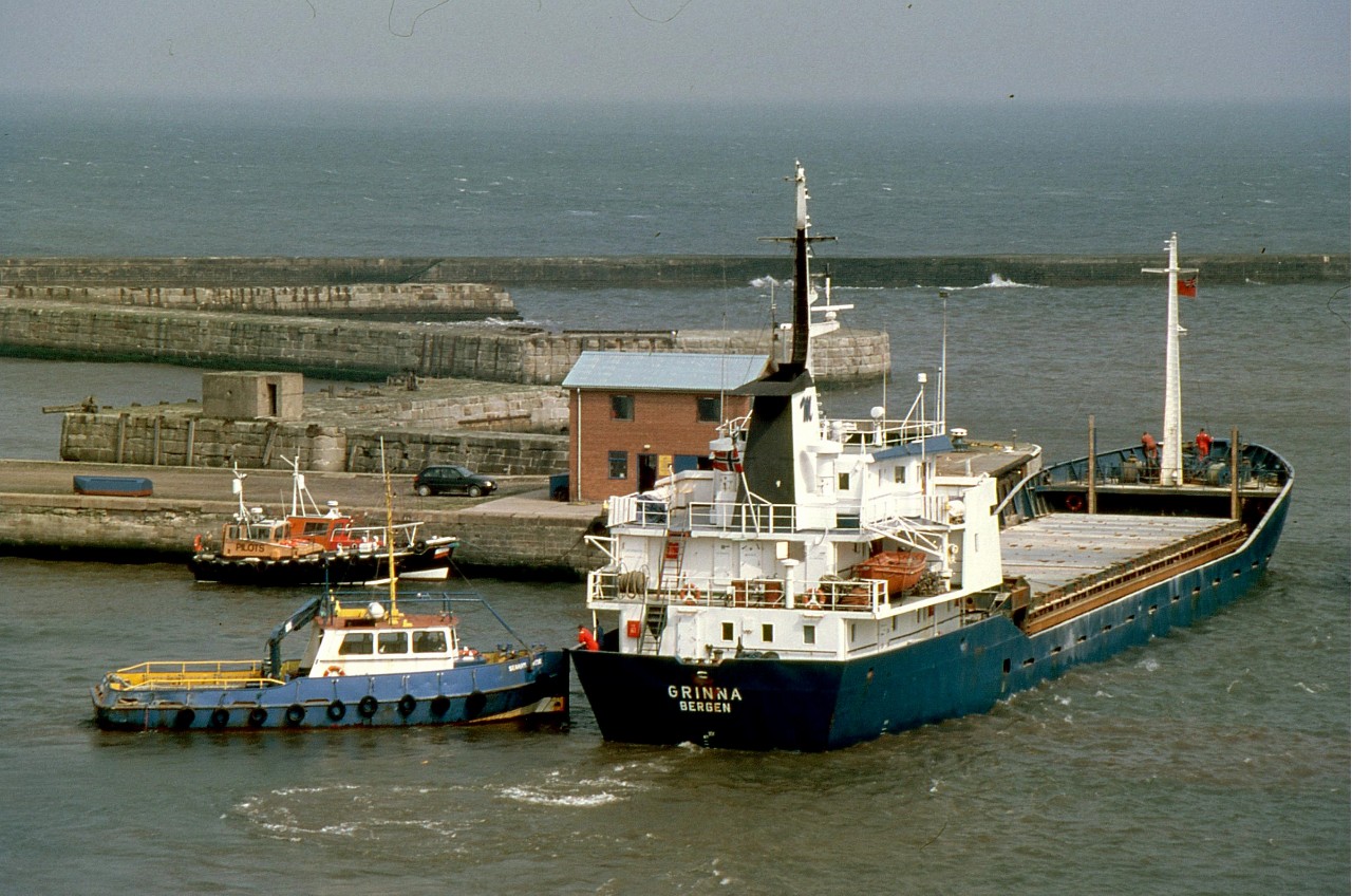 The elderly GRINNA at Seaham on 18/07/2004. Built at Frederikshavn in 1972 as MERC ASIA and later ran as ECO SADO. Still listed under Nis flag as an aggregates carrier.
