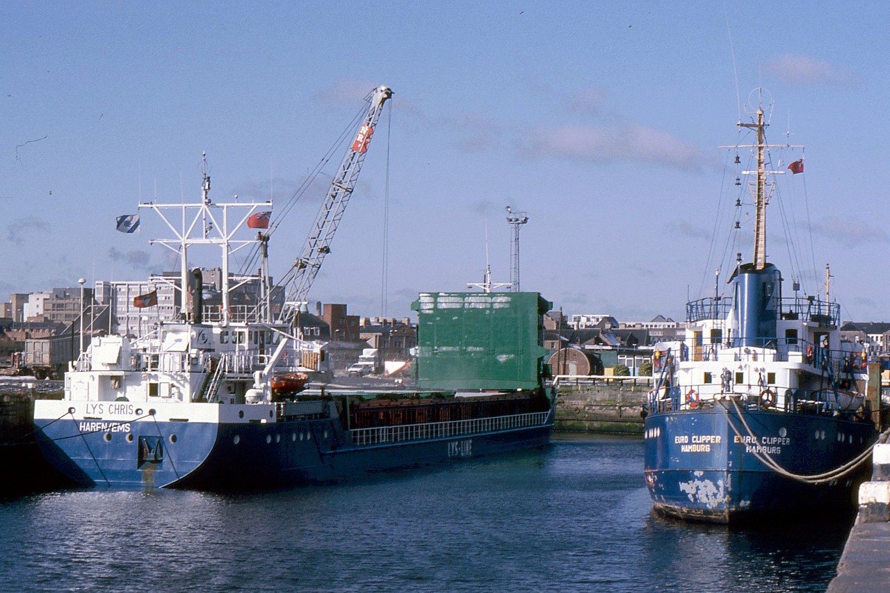 As LYS CHRIS in Middlesbrough Dock 27.03.95 in company with EURO CLIPPER.