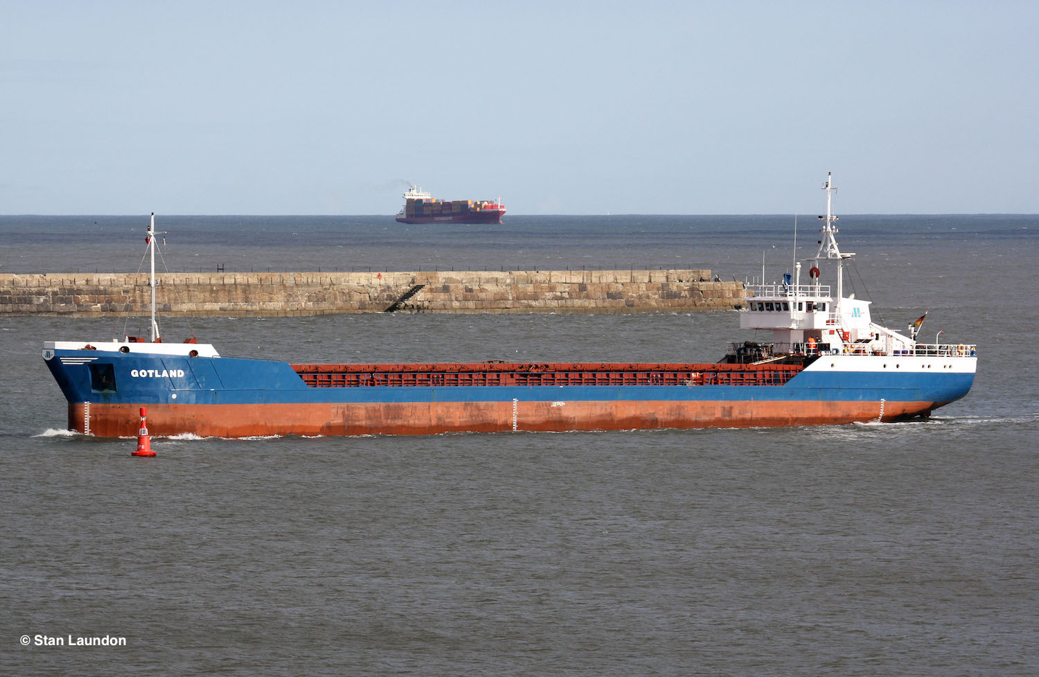 The GOTLAND passing the New Pier (Heugh Breakwater) on September 18th, 2010. She had arrived from Grimsby, on Humberside, for loading at Irvine's Quay.