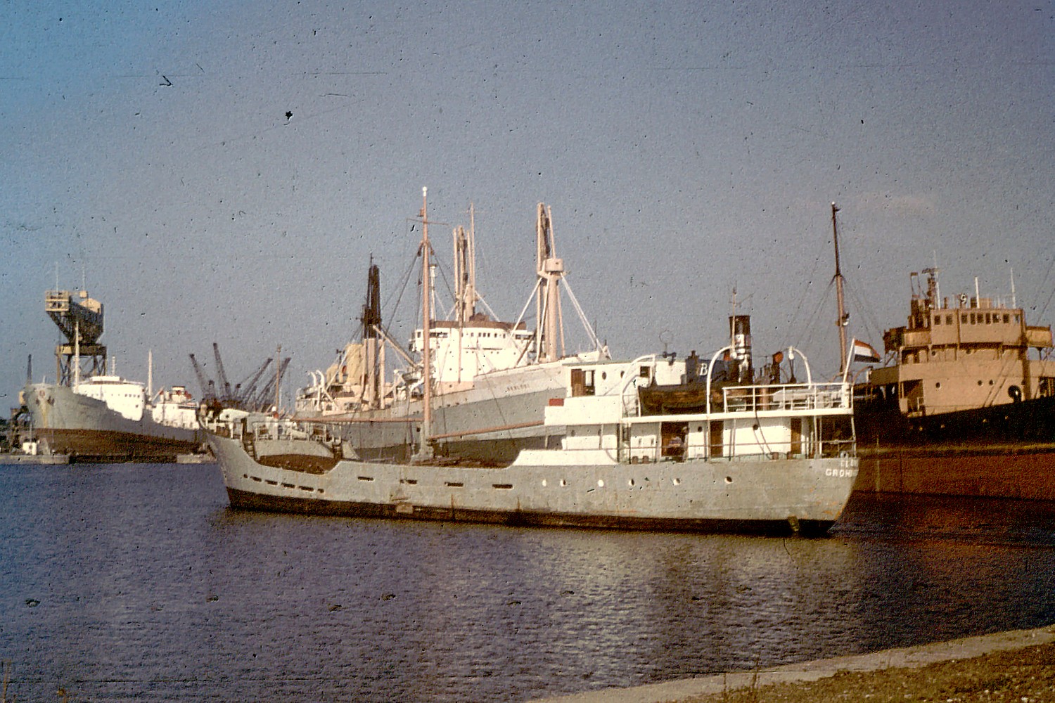 A fascinating view of Central Dock, Hartlepool, taken by Albert Weller: This is dated to 1961 (maybe very early 1962) because of the other ships in view. Can't put a name to the North Thames Gas Board collier to the right (showing no. 9 on her bridge) but looks to be one of their 1940s built ships. For instance, on 8 January 1962 the WINSOR and FLAMMA were both there (the WINSOR listed among my sightings of the reserve fleet that day). Behind the GLOBE is the BENLEDI (1945) and I think the ship to the left is the Westfal-Larsen MALMANGER, also there in January 1962 for conversion.
