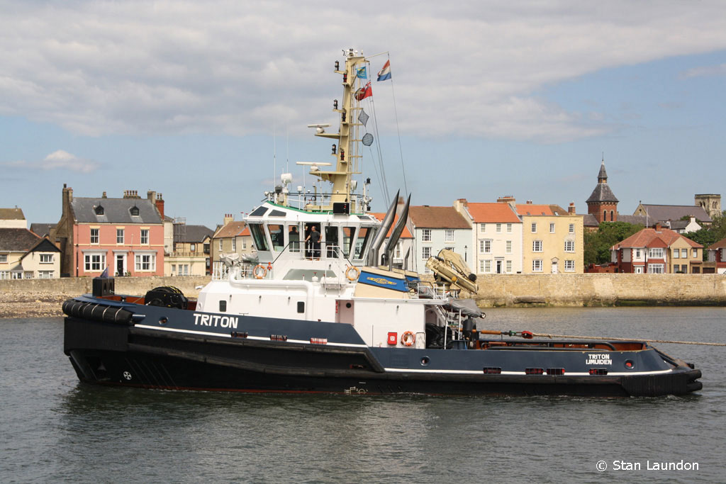 The TRITON arriving in Hartlepool on Monday, June 18th, 2012, towing the rig JB 114 from the Humber.