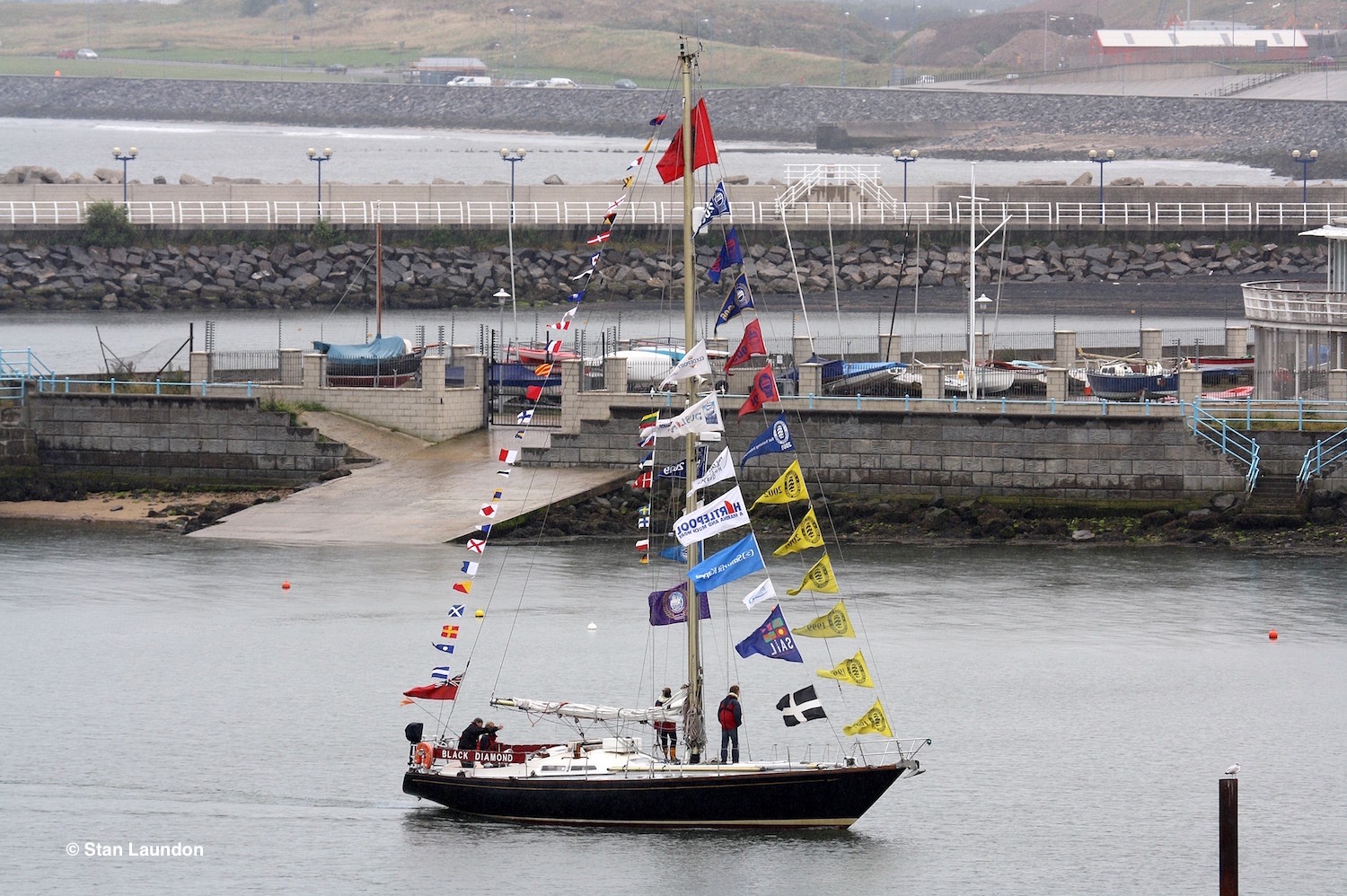 BLACK DIAMOND OF DURHAM is a 10 berth 45 foot Bowman Corsair Ocean Racer and seen here entering Hartlepool Marina on August 31st, 2009.