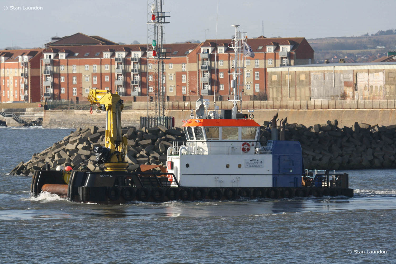 - The SANDY M leaves Hartlepool helping to tow the pontoon AMT DISCOVERER into the Tees Bay.