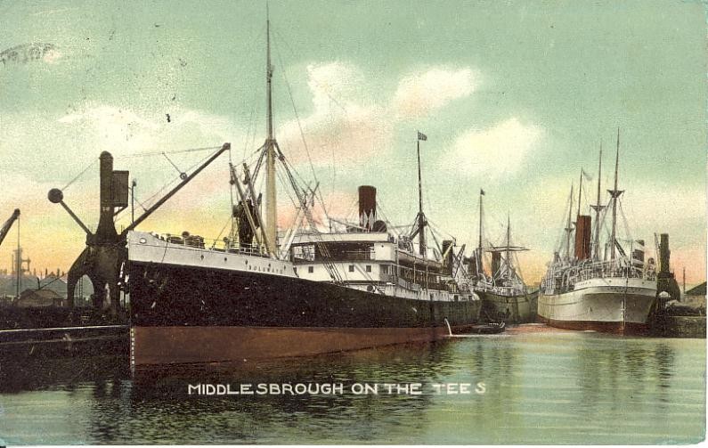 One of my treasured artifacts acquired during my long time with the Tees and Hartlepool Port Authority is a rather battered copy of handbook THE TEES PORTS compiled by the Secretary to the Tees Conservancy Commissioners published in September 1897. Several photographs depict the then Tees scene but only two contain ships which can be identified. This is one of them, showing the Bucknall Line vessel BULUWAYO in Middlesbrough Dock (before acquiring her final configuration from 1899).