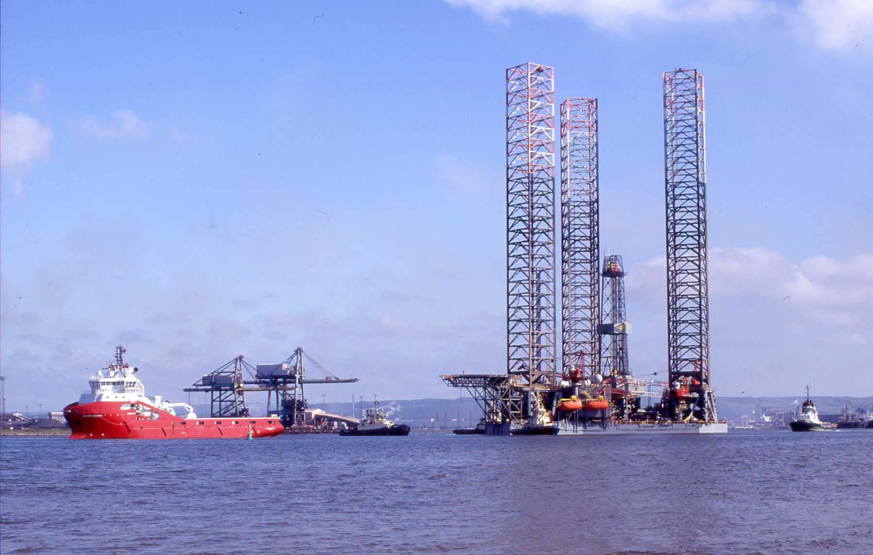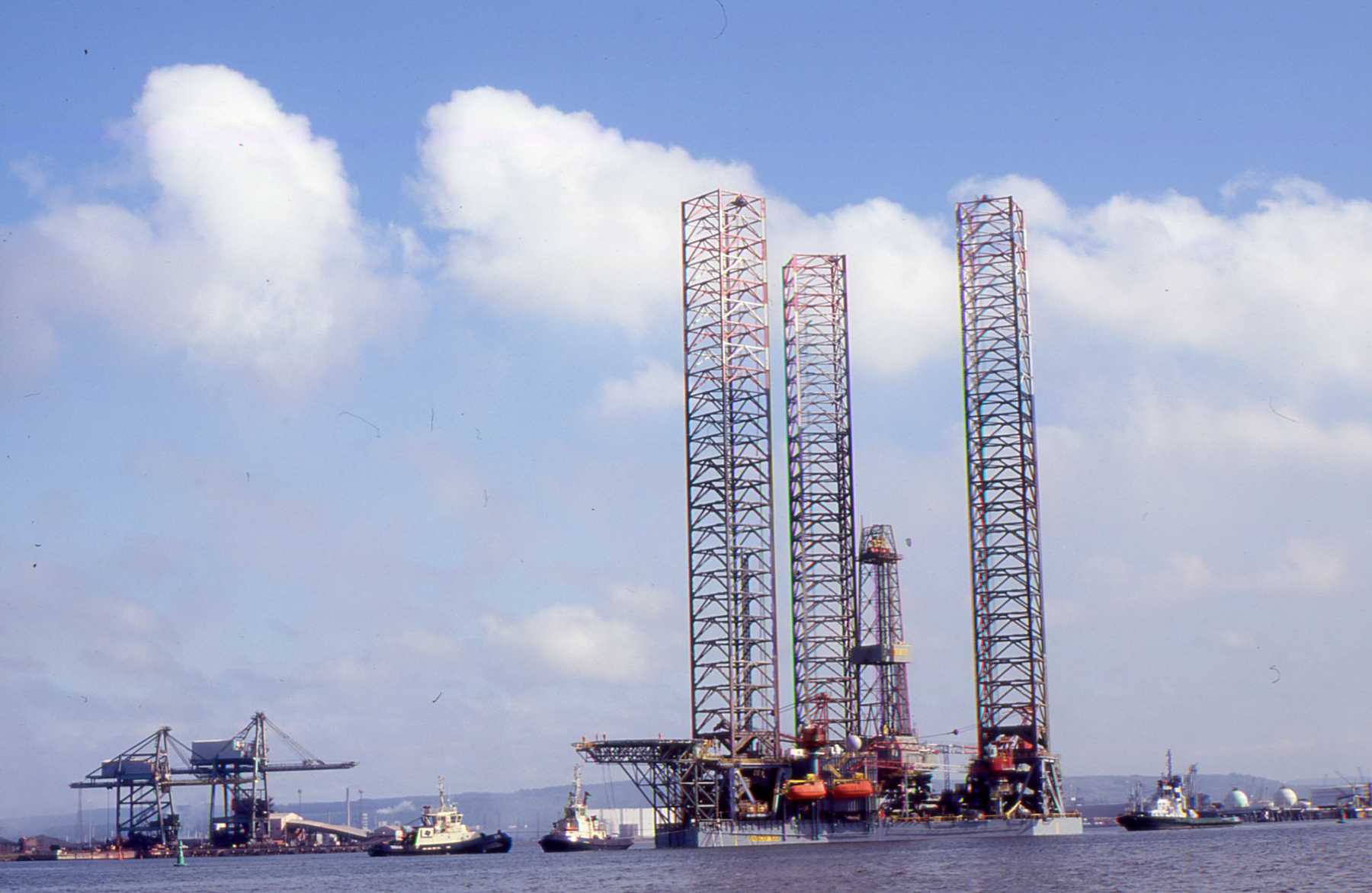 Awaiting the rig ENSCO 100 to be brought from the Seaton Channel by local tugs.