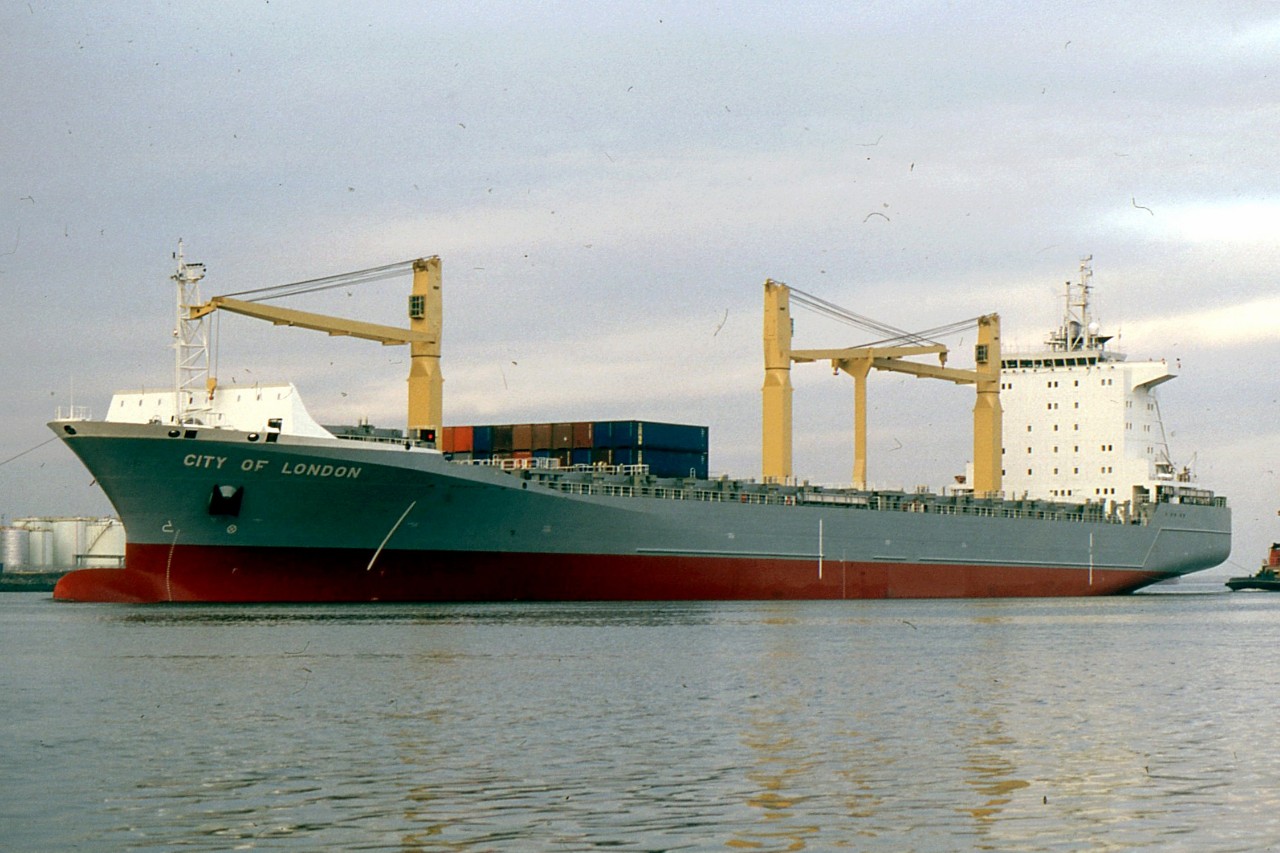 CITY OF LONDON the last ship I saw in Ellerman colours,arriving for Tees Dock 23.12.97