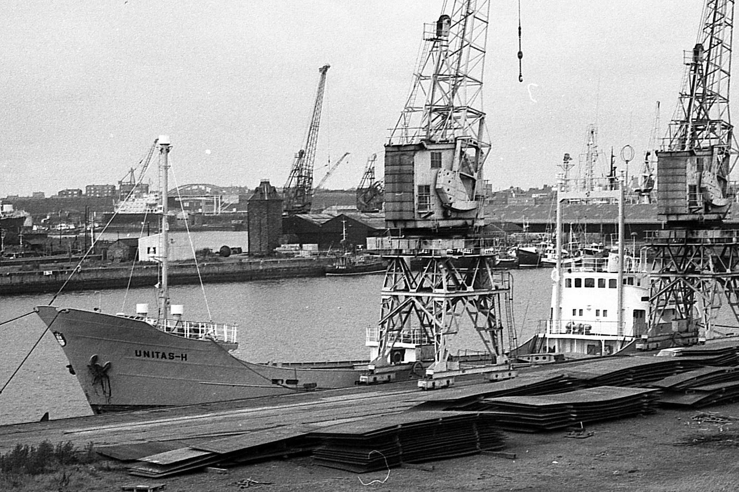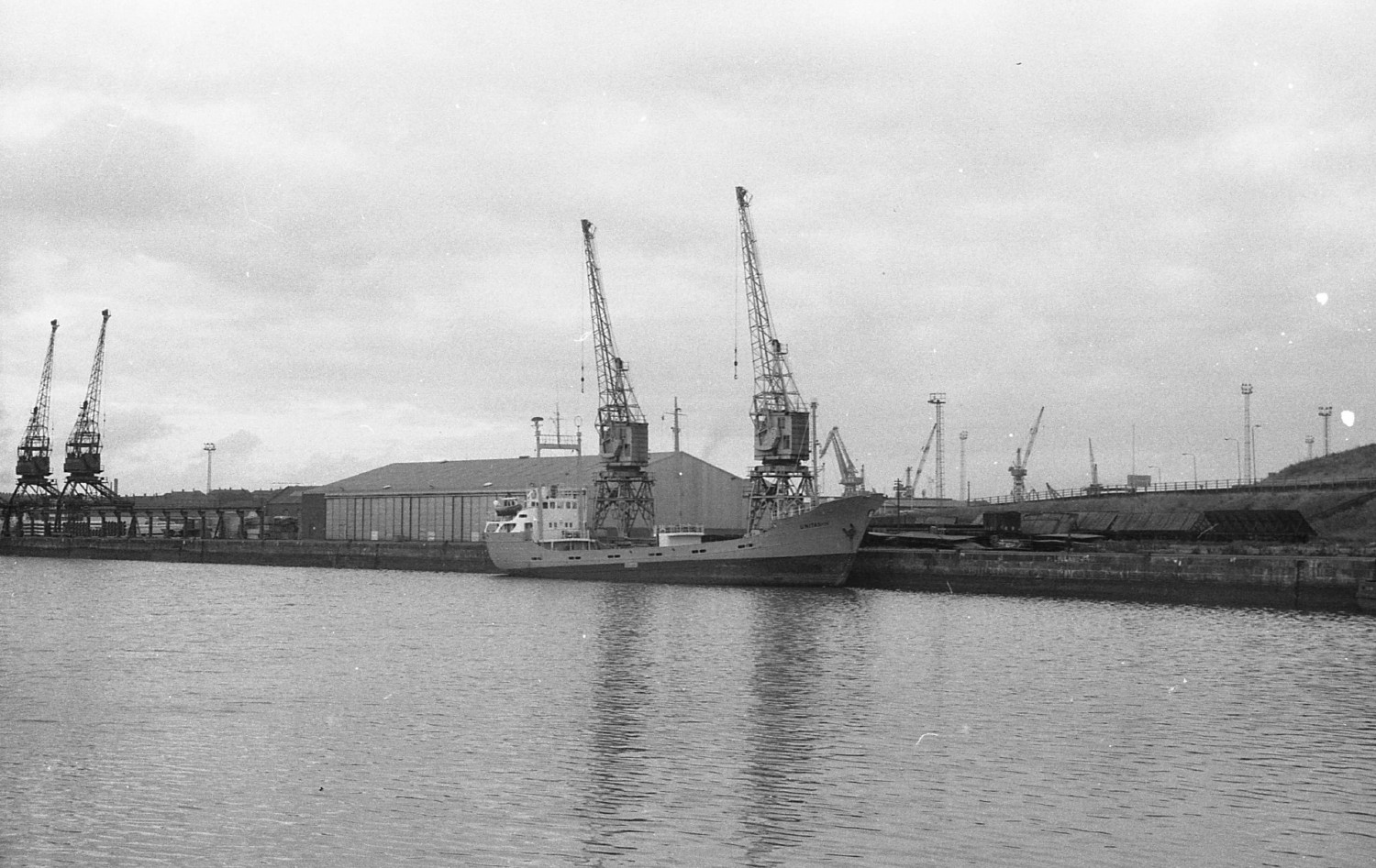 Albert Weller slide bearing date February 1976. Tees Dock: However, this clearly dates back to around the time of my own sighting on 2 November 1975, as the BUNGA RAYA can be seen in the background of both our views: I saw her again as UNITAS-H on the Tyne on 2 September 1976. I had to do the scans before I realised I was seeing her in the Albert Edward Dock, North Shields. The full vista: with enlargement: From above: and full negative view: Ron