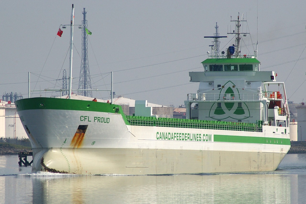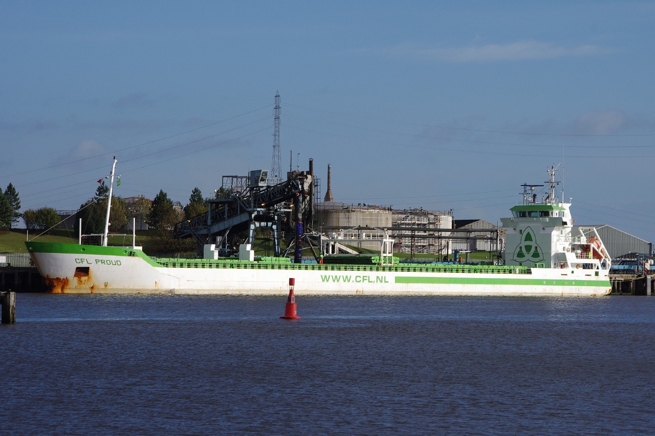 CFL PROUD alongside Clarence Wharf 27.10.13 and arriving on an earlier visit to the same berth 05.06.10