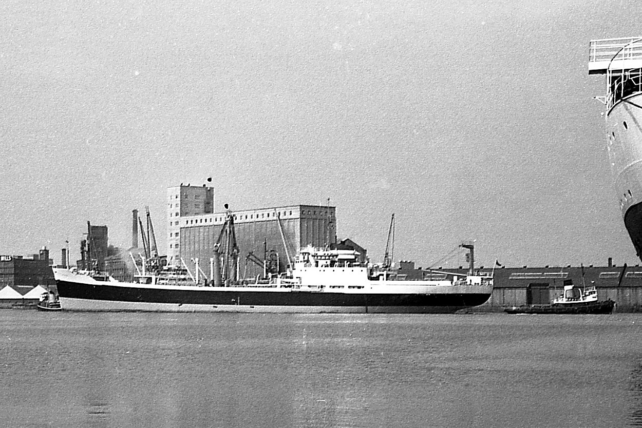 The ship-spotter's nightmare! I first saw this ship (I think) in August 1970 when she was being towed through Birkenhead Docks. As you can see the name on the bow is not one of the biggest to be seen and although I photographed the ship I simply could not quite make out the name. Oh, well, I thought, I'll get her a bit further on when in berth. Horror of horrors, by the time I got round there a little while later, what did I find? There were two of them! Her sistership HISTORIAN was also berthed! So, although I did count them as two different sightings, I've never been absolutely sure!