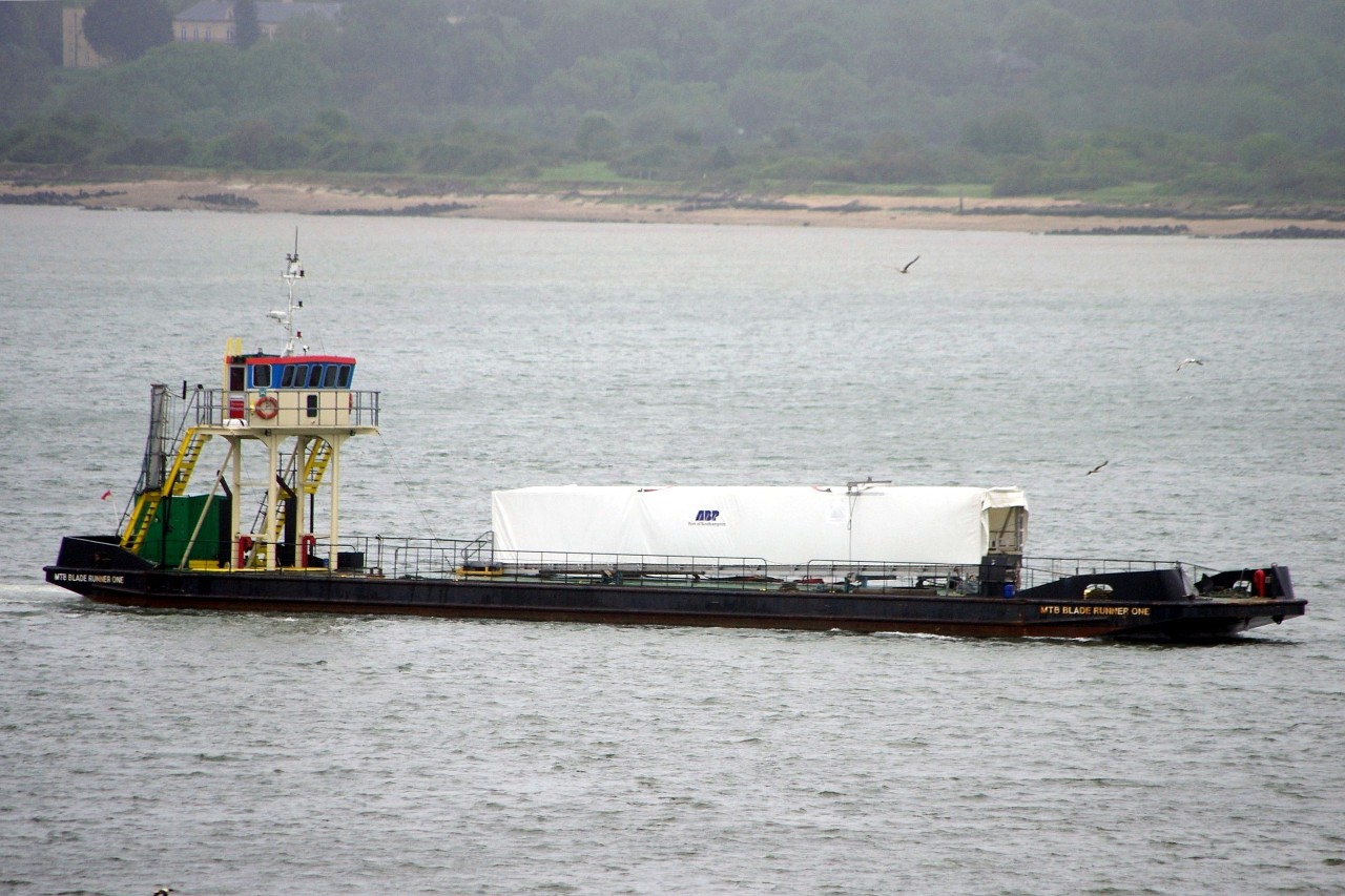 MTB BLADE RUNNER ONE Built at Aveco (Teesside) Ltd in 2000 seen at Southampton 10.05.12.Sold to Walcon Marine Southampton in 2015,the stern section became the motorised work barge WALCON WARRIOR seen working on the Boat Show pontoons at Southampton 02.09.18 the bow section became to dumb barge WOLF.