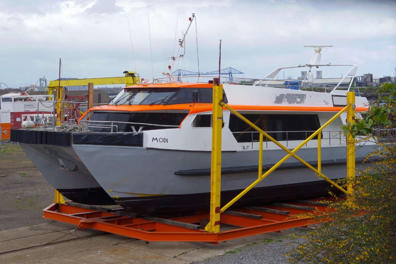 MODI on the Tees Slipway 16.05.15,looks to be a new cradle,nice to see the yard back in work,but no idea as to the vessel where it came from or what it is to be used for,no sign of any previous name. Just the job for trips up and down the river !!!