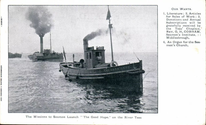 This was a Mission to Seamen vessel built around 1903 and based on the Tees, not found in MNL or elsewhere, can anyone trace her origins?