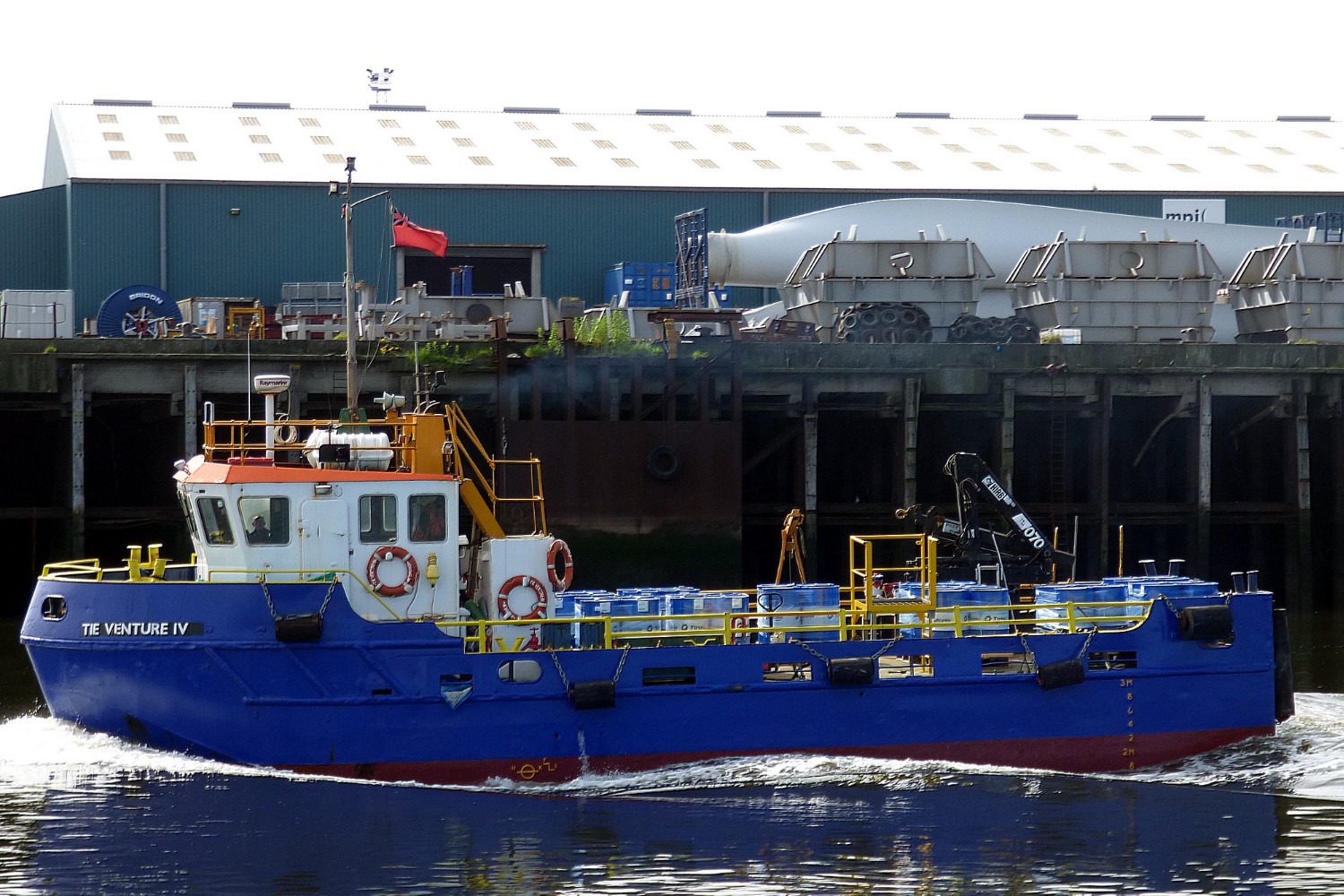 TIE VENTURE IV at Tees Inshore Engineering 17.03.97 after her recent return from Guernsey, and still retaining that as her port of registry.