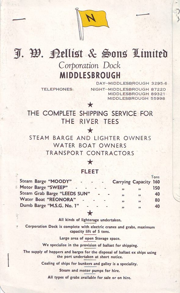 I vaguely remember them as still being in operation when my interest started in 1960 (although I could be wrong!!) but I do not recall seeing any of their vessels, if they were still running them by then. Corporation Dock is adjacent to the Transporter Bridge, now the new location of the Tees Harbour Office, based in the former Fire Brigade building.