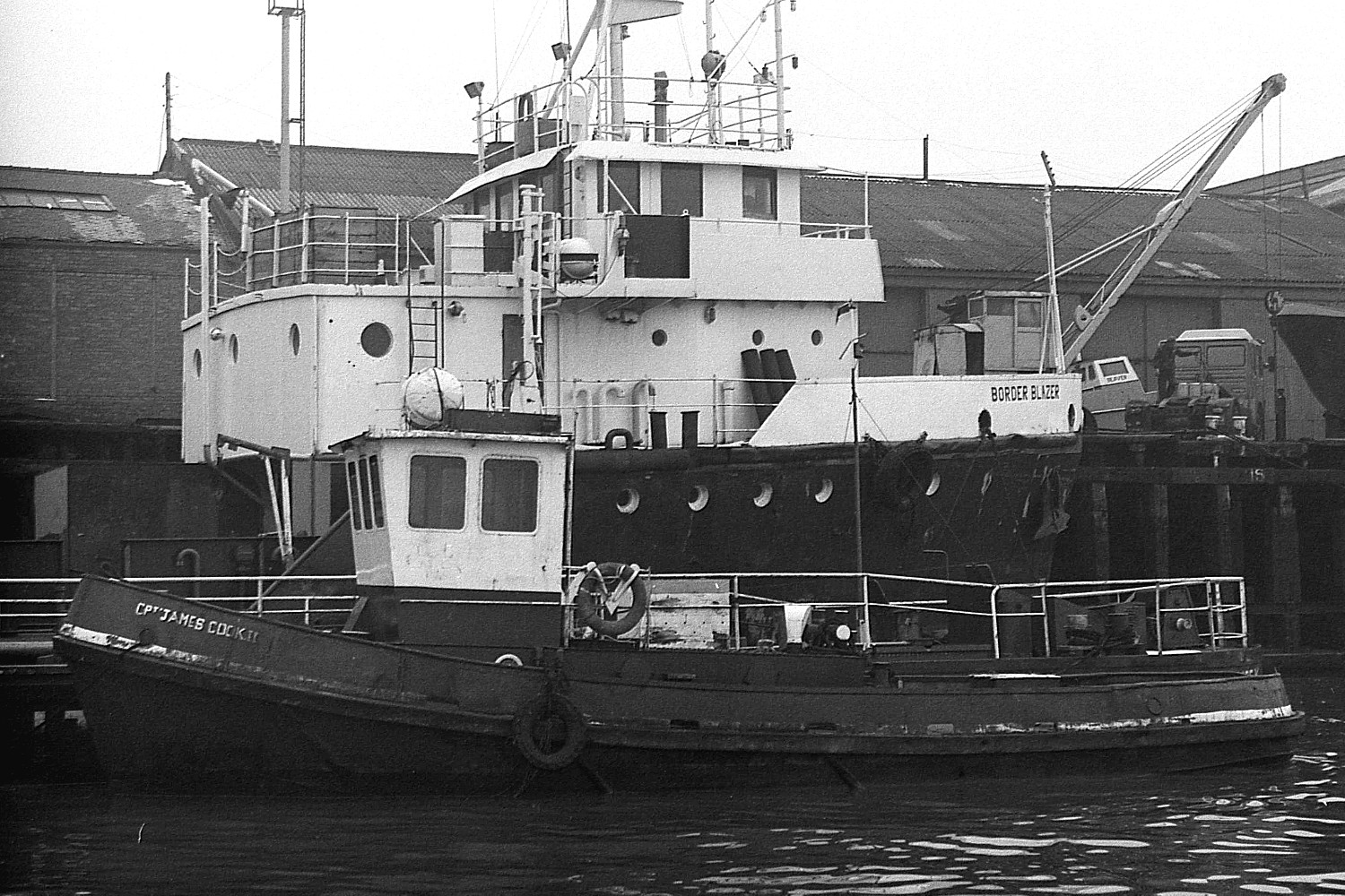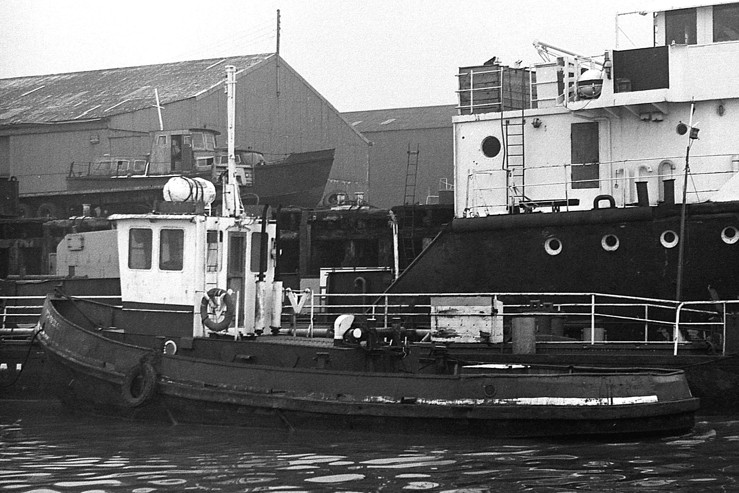 Checking to see if I had any views of my own of the excursion vessel CAPTAIN COOK (I haven't!) I came across these long-forgotten (well it is almost 35 years!) negatives of this small tug berthed alongside other various vessels operated by Tyne-Tees Waste Disposal from what is now Dawson's Wharf, part of the former Tyne-Tees/Dent's Wharves, on 20 March 1979. Again, I have no details for her.