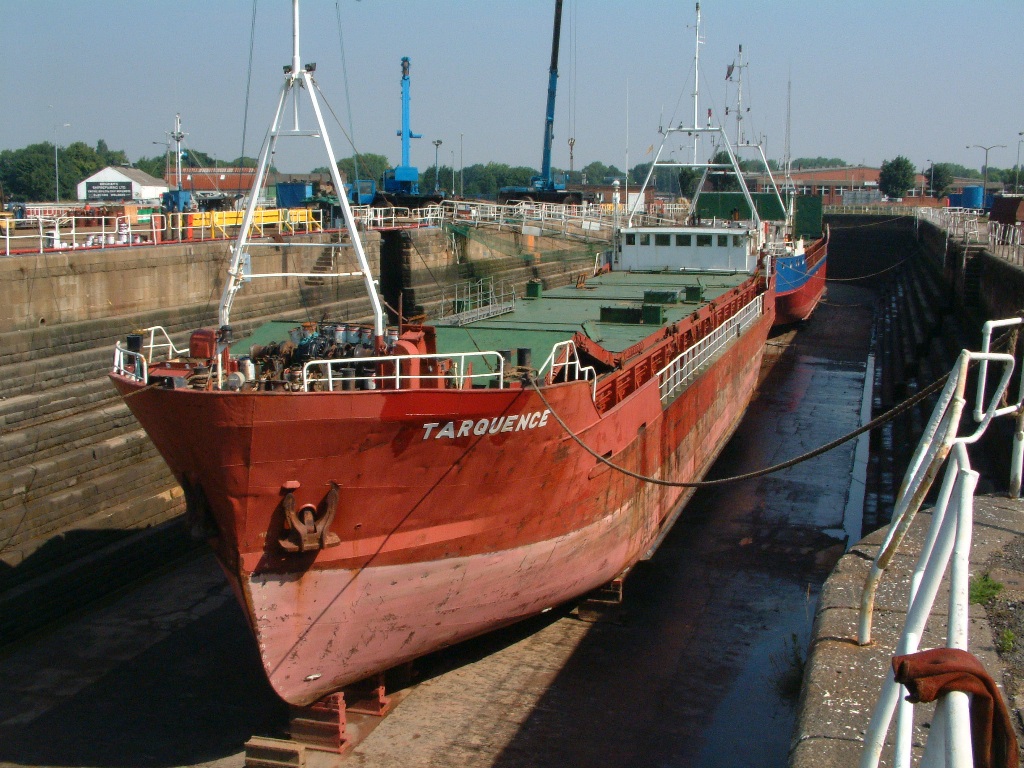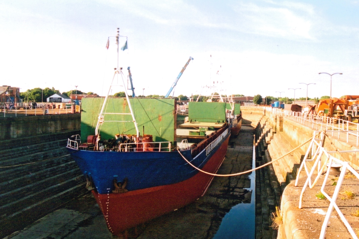 MUNGO in the making. In the process of being renamed from TARQUENCE in the Alexandra Dock drydock. photo 2002 ish.