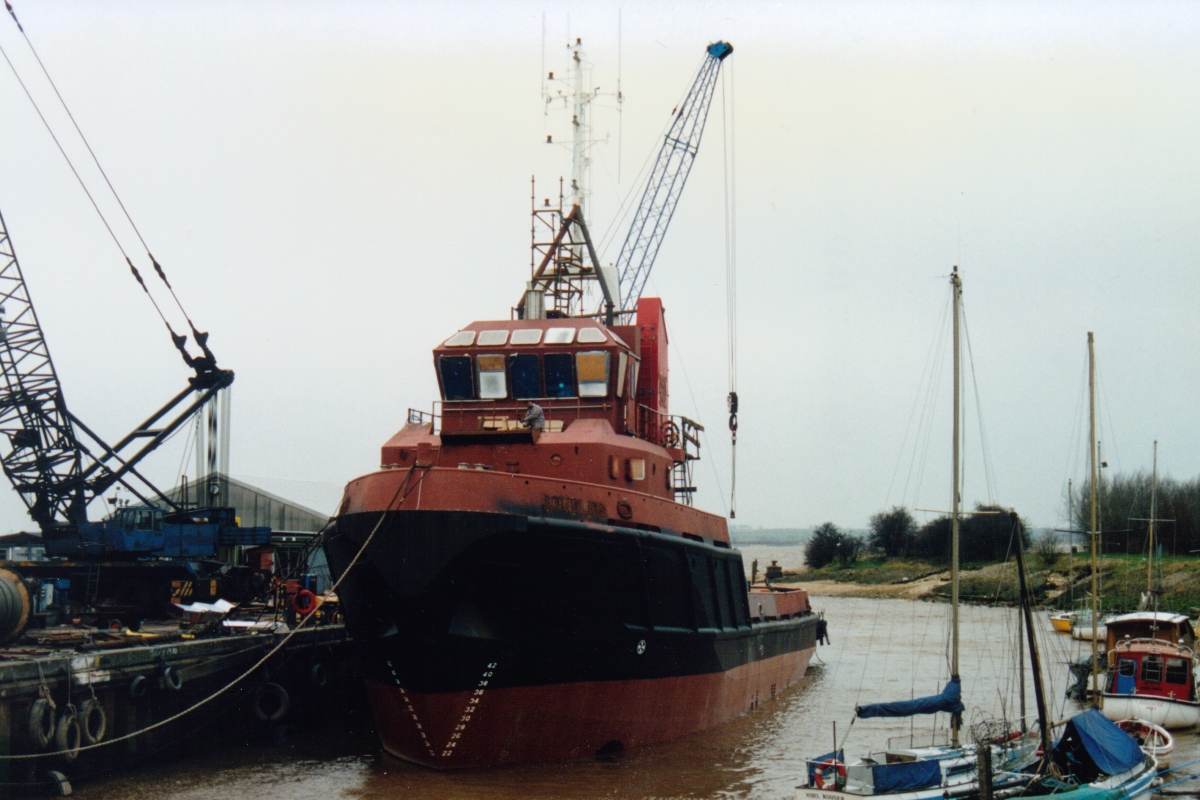 Then it looks as though Damen bought the bare hull (in 1993?) and completed her at their, by now, subsidiary Dunston.