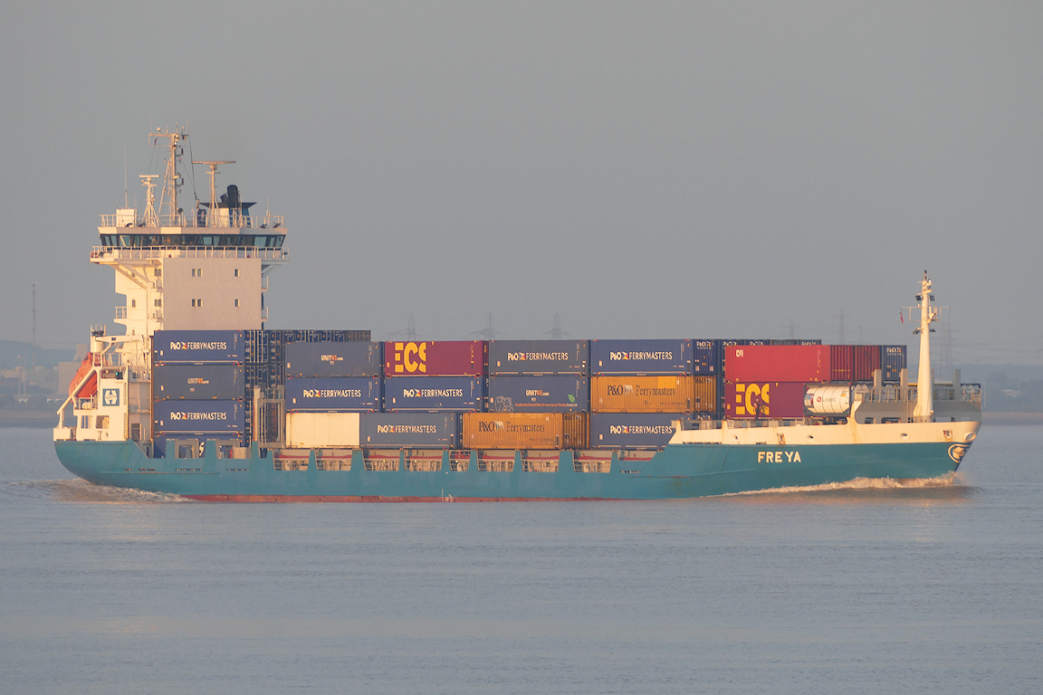 Sailing from King George dock for Zeebrugge, running alongside ELISABETH on the P&O lo/lo service.