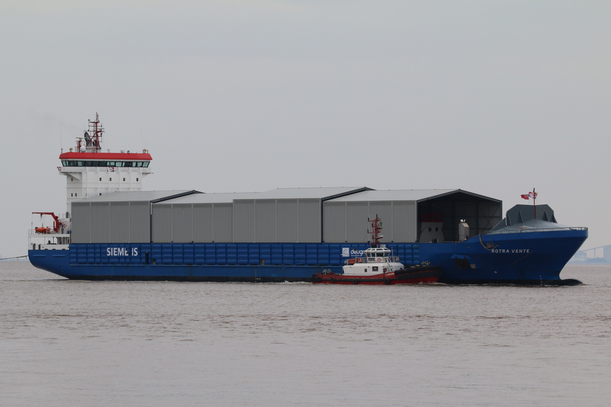 A large scale evacuation took place in the port of Esbjerg in the night of Apr 10, when the crew of semi-sub HL vessel Rotra Vente (6564 gt, built 2016) following an engine failure at 2150 hrs, as the vessel was heading out of the harbour, bound to Kingston upon Hull. In the strong western wind with a strong inward tide the vessel experienced a blackout and began to drift back to port. The vessel dropped anchor, but the strong wind sent it on a collision course towards the two Maersk owned drilling rigs drill platform Maersk Resolve (15589 gt, built 2009) and drill platform Maersk Resolute (15589 gt, built 2008) and both had to be evacuated. Rotra Vente came in contact with one of the rigs with low speed and got wedged in the rig's helipad. With the rising tide it was important to get the vessel quickly free again, so two tugs and a pilot boat were sent to get it under control. There was no major damage, but a mast and antennas that were entangled in the platform broke off. The draught of the vessel was increased by taking on ballast water in the stern, so the tugs managed to pull the vessel to a berth at the Aries Quay where it is detained today, for further inspection of the damage.