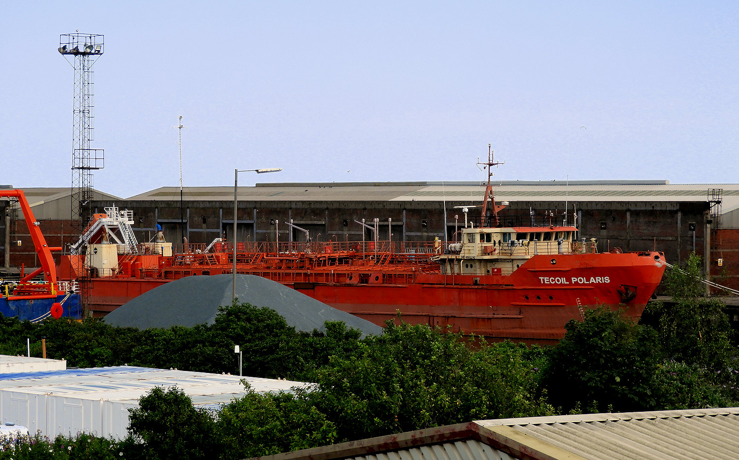 A long-stayer in Albert Dock, TECOIL POLARIS started life as ST-1345 from the Volgograd yard in 1990, IMO.8883290. Later ALEKSANDR DEMIDOV then ROSKEM I to 2017, presumably converted at that time, listed as an oil products tanker.
