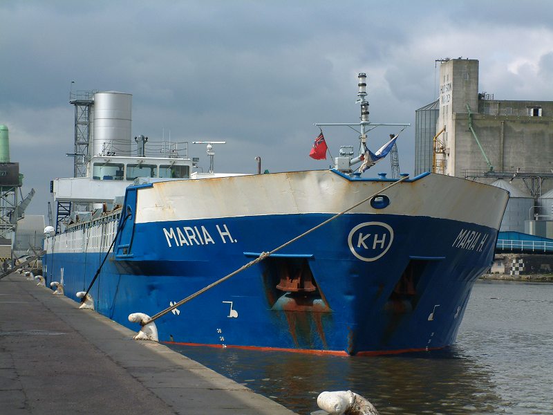 And previously, in Hull Fish Docks on 26 July 2002! MARIA H not quite looking her old self just at the moment, because a few weeks earlier she collided with the BRIDGE at Keadby while sailing from Gunness.