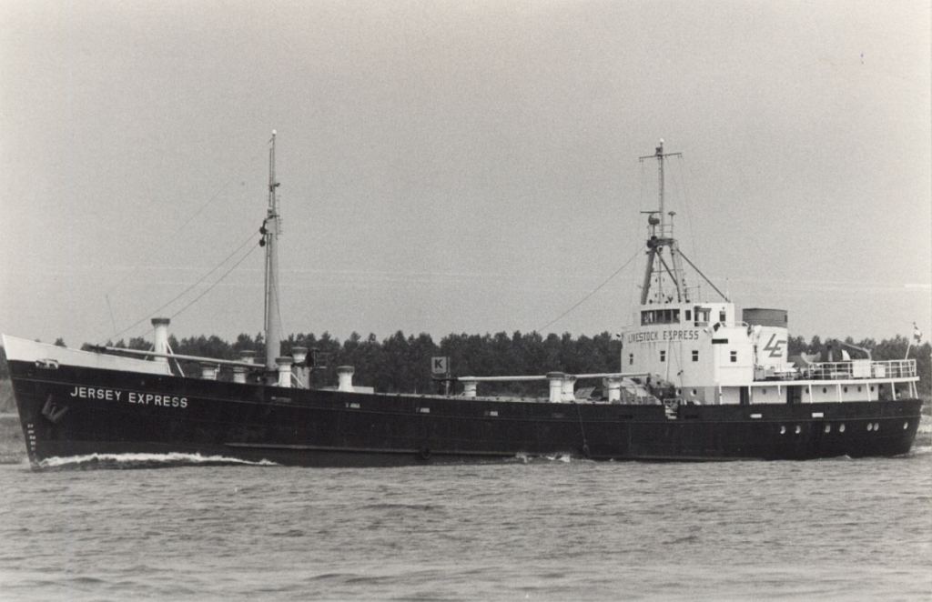 In 1972 rebuilt for the transport of cattle and renamed Jersey Express, owner: Vroon B.V., Breskens, Nl., 1986 San Carlos, Panama flag and broken up in 1992 at La Seyne, France.