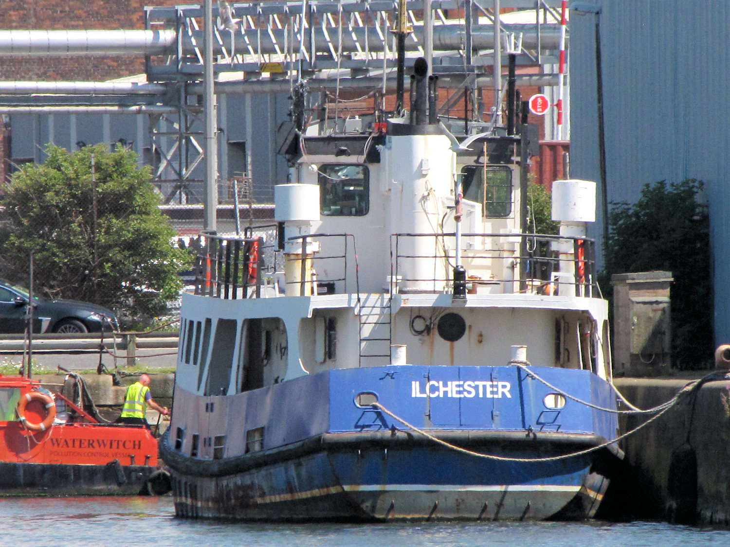 ILCHESTER, much modified, in Liverpool on 22/6/2013. Her intended use was for diving support off Holyhead but that may not have happened. She has been at Liverpool for a few years under repair.