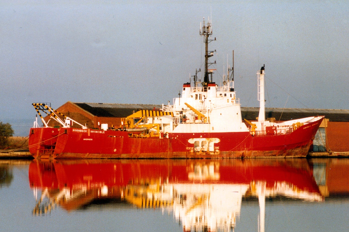 HORNBECK INVINCIBLE laid up at Grangemouth. Sorry no date on photo but must be 1995 to 1998.