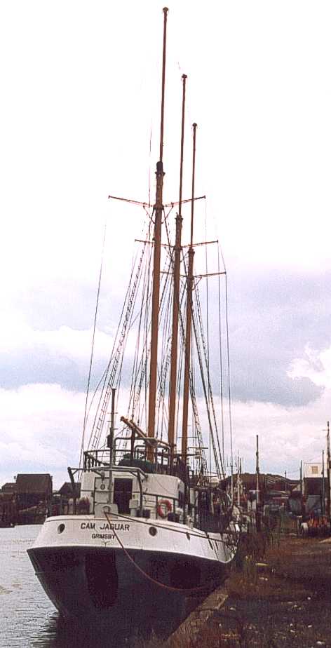 Now the decision making. Where would the conversation of 'CAM Jaguar' to a three masted sailing schooner take place. The options were to take her back to Australia for the conversion or to find a port on the east coast of England where the work could be carried out. The costs of motoring back to Australia were prohibitive. Grimsby Fish Docks definitely had space for the ship to be berthed alongside and the conversion work to take place. There were very few fishing boats still in harbour and the CAM Shipping Standby fleet was also to be sold off. As there were many skilled engineers, welders and craftsmen still working in the dock area it was decided to carry out the conversion in the Grimsby Fish Docks.